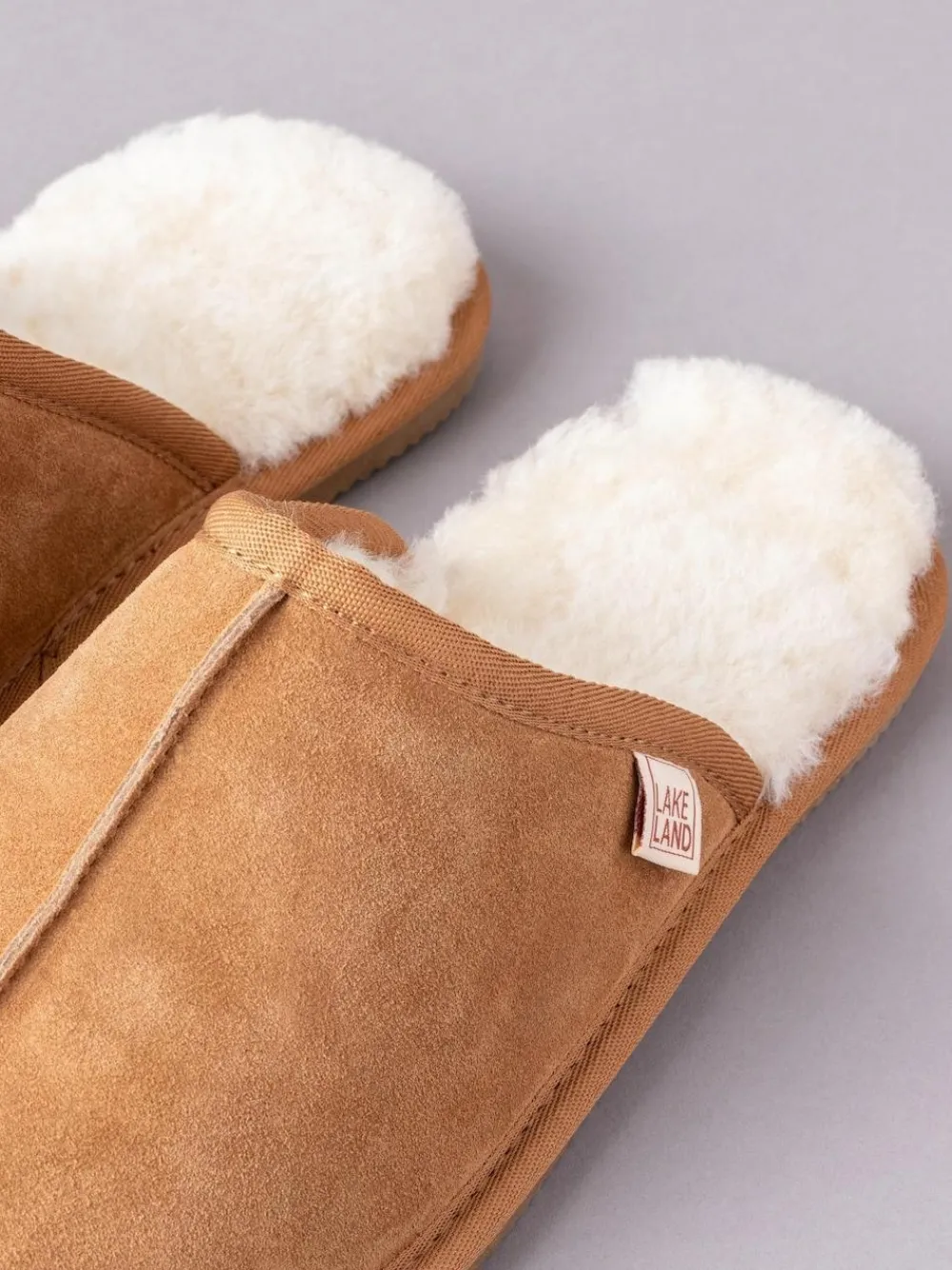 Clearance Lakeland Leather Mens Sheepskin Slider Slippers Tan Brown