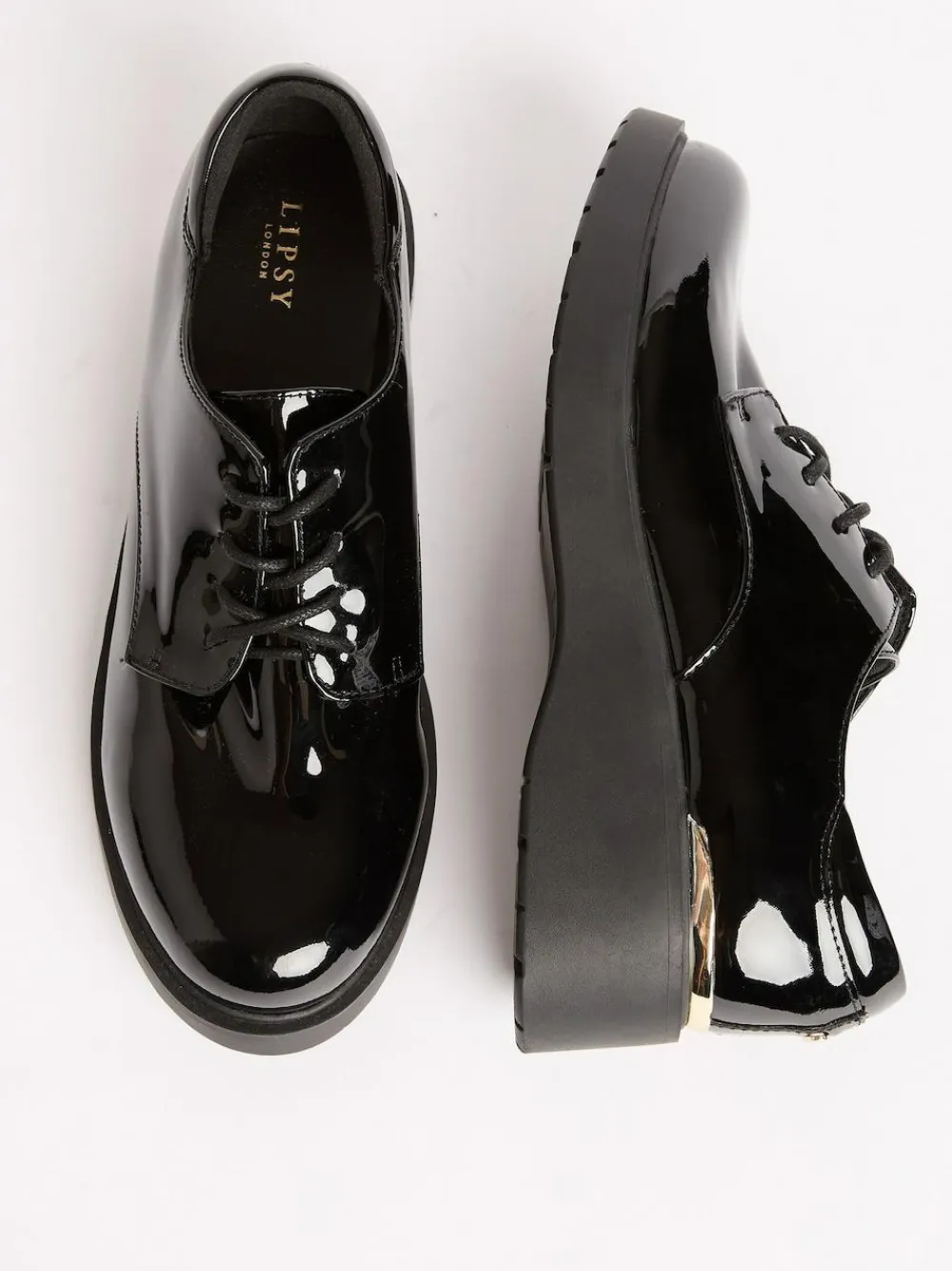 Clearance Lipsy Black Heel Clip Wedge Brogue School Shoes