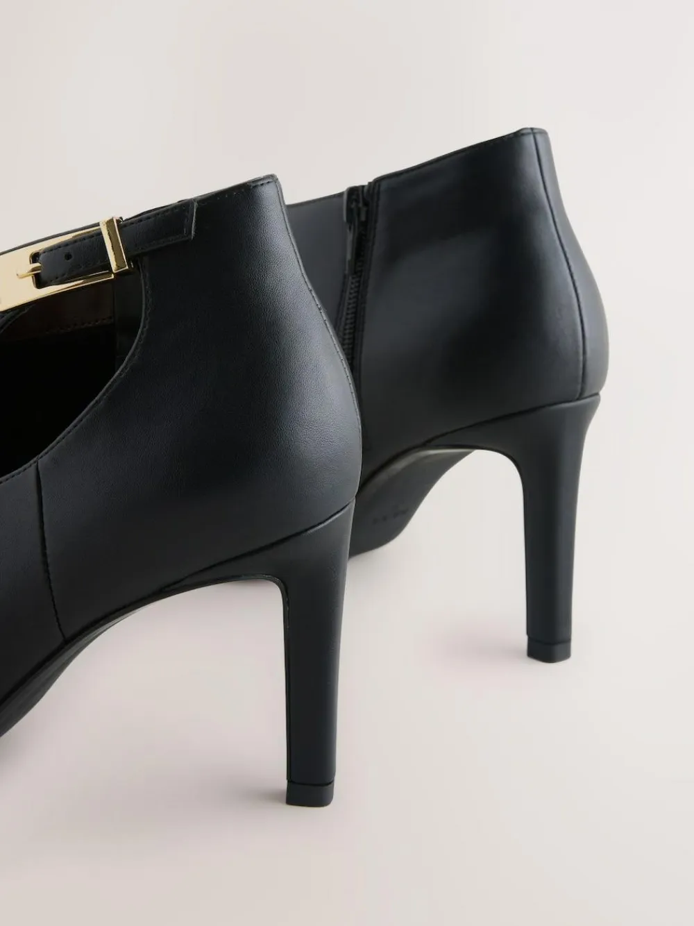 These stylish black shoes have a side fastened strap on one side and a zip on the other for easy wear, featuring a pointed toe and a smooth faux leather, a Forever Comfort® cushioned footbed and a stiletto-style heel. Faux leather Pointed toe Adjustable strap and zip fastening Forever Comfort® footbed Stiletto heel Heel height 8.5cm. Upper – Other Materials, Lining & Sock – Other Materials, Textile, Sole – Other Materials.