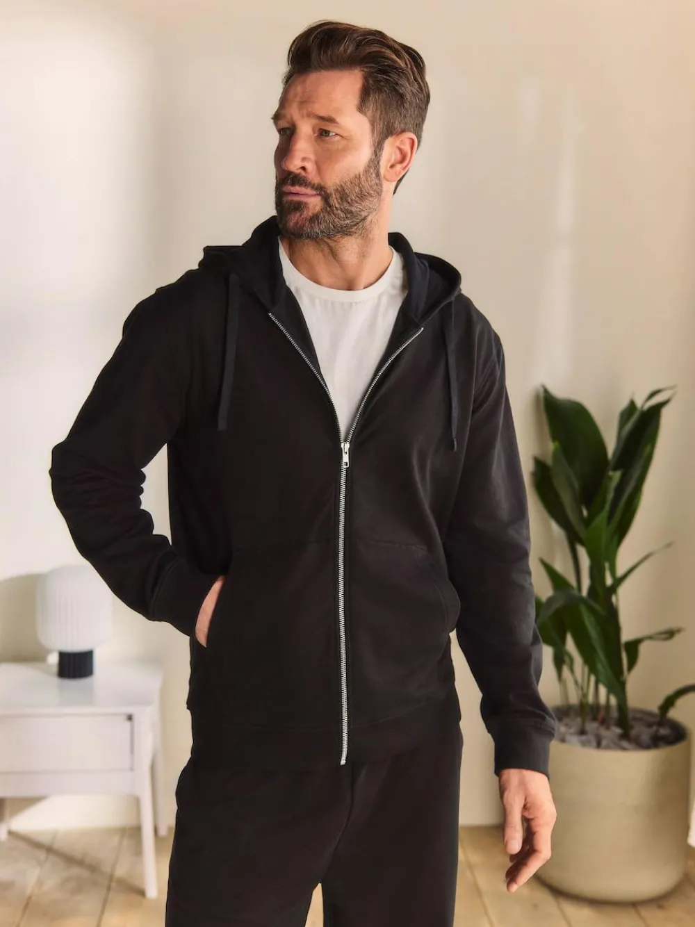 A wardrobe staple you’ll reach for again and again, our black lightweight zip-through hoodie is made in a soft jersey with a fixed hood and zip fastening. Good for wearing all year round Cotton is light and breathable Great for layering Drawstring Metal zip fastening Hood Machine washable. 100% Cotton. Warning: Keep away from fire and flames.