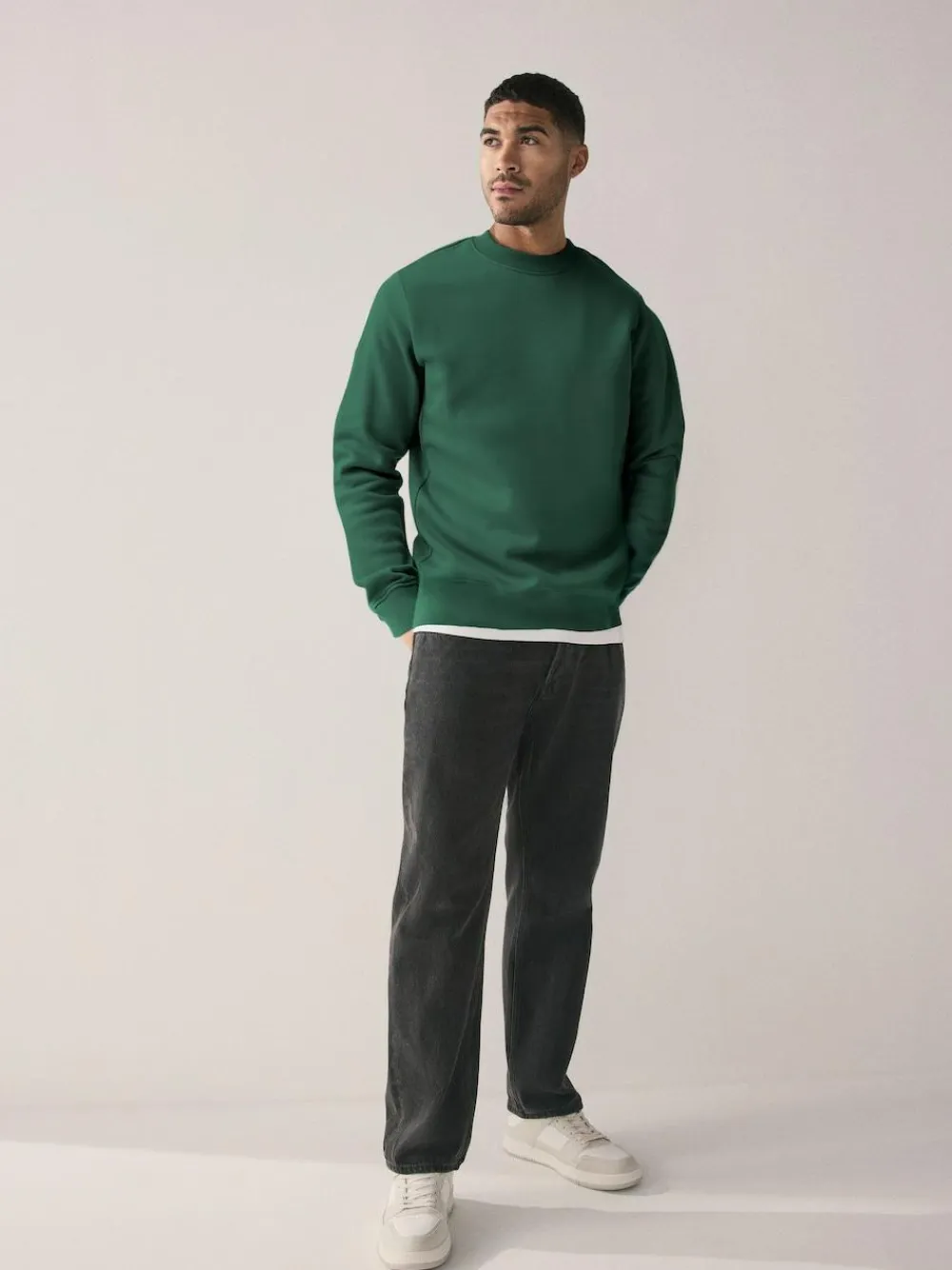 Stock up on your casual staples with this two-pack of navy blue and green crew sweatshirts. Crafted from a premium cotton-rich jersey fabric with a soft handle, they offer an effortlessly comfortable feel. Ribbed cuffs and hem provide a snug, classic fit. 2-pack Cotton-rich jersey Soft handle Crew neck Long sleeves Ribbed cuffs and hem Machine washable. 2 x Jumper 80% Cotton, 20% Recycled polyester.