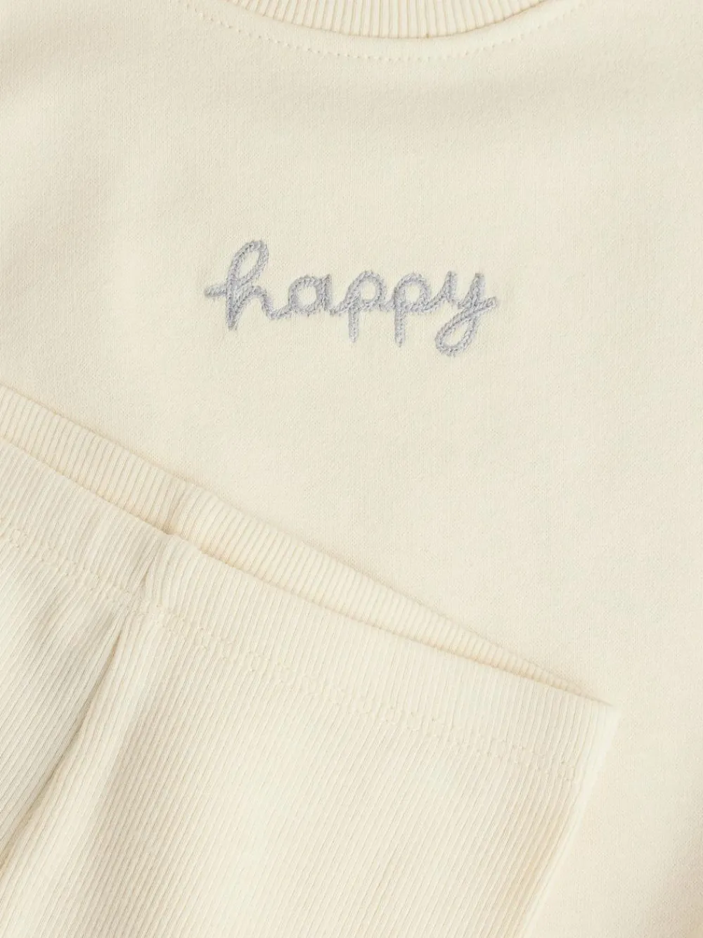 Machine washable. Sweater 90% Cotton, 10% Recycled polyester. Leggings 95% Cotton, 5% Elastane. Warning: Keep away from fire and flames.