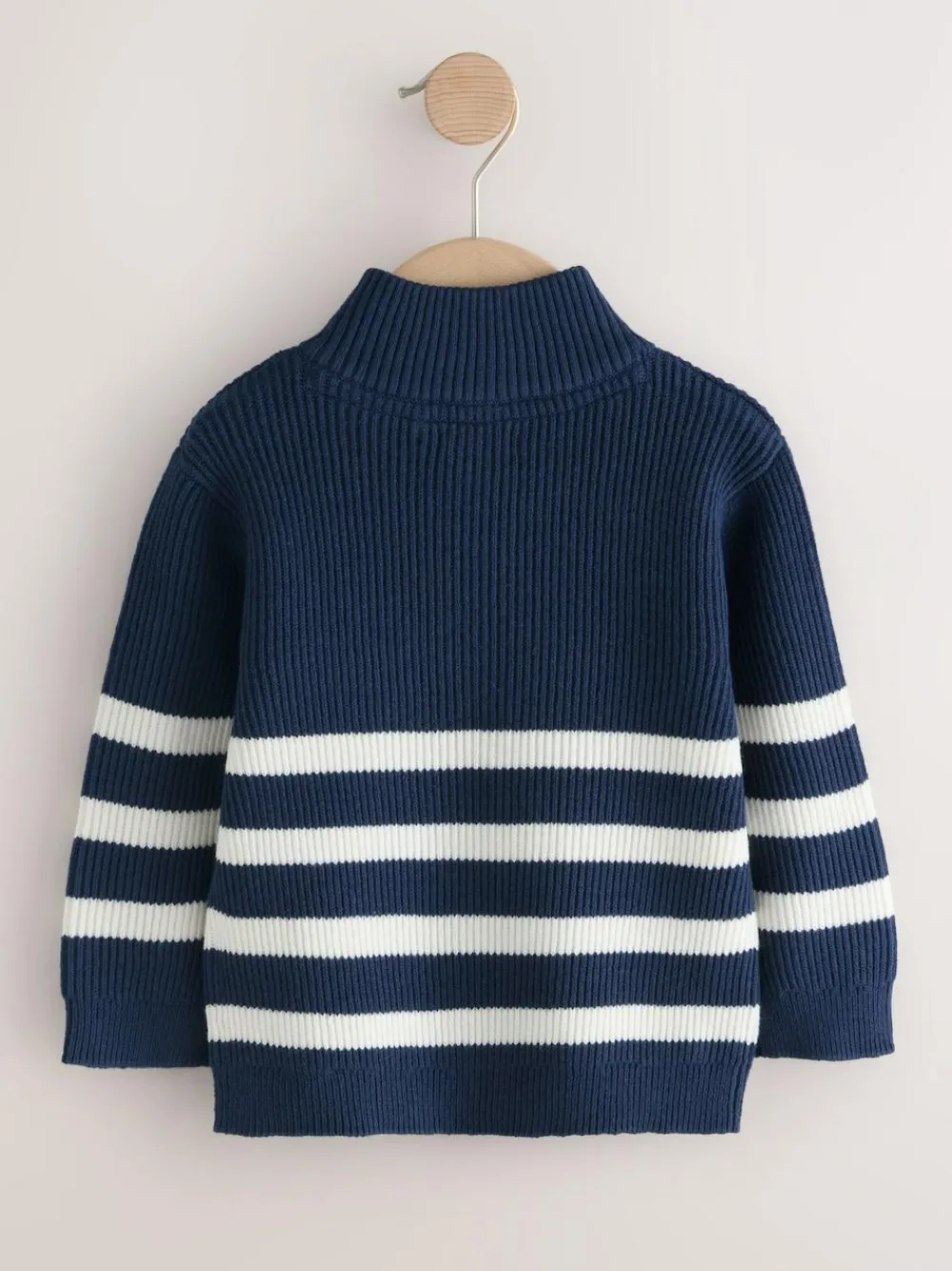 Clearance Next Knitted Quarter Zip Jumper (3mths-7yrs) Navy Blue/Ecru Stripe