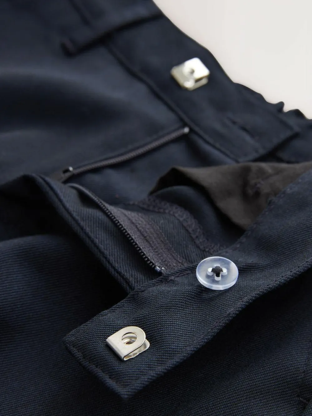 These practical Navy school trousers feature a straight leg and a longer leg length, perfect for growing children. The regular waist is enhanced by an adjustable waist feature, ensuring a comfortable and personalised fit. Durable and smart, these trousers are designed to keep up with everyday school activities. Adjustable waist Straight leg Longer leg length Regular waist 65% Recycled polyester, 35% LENZING™ ECOVERO™ Viscose.