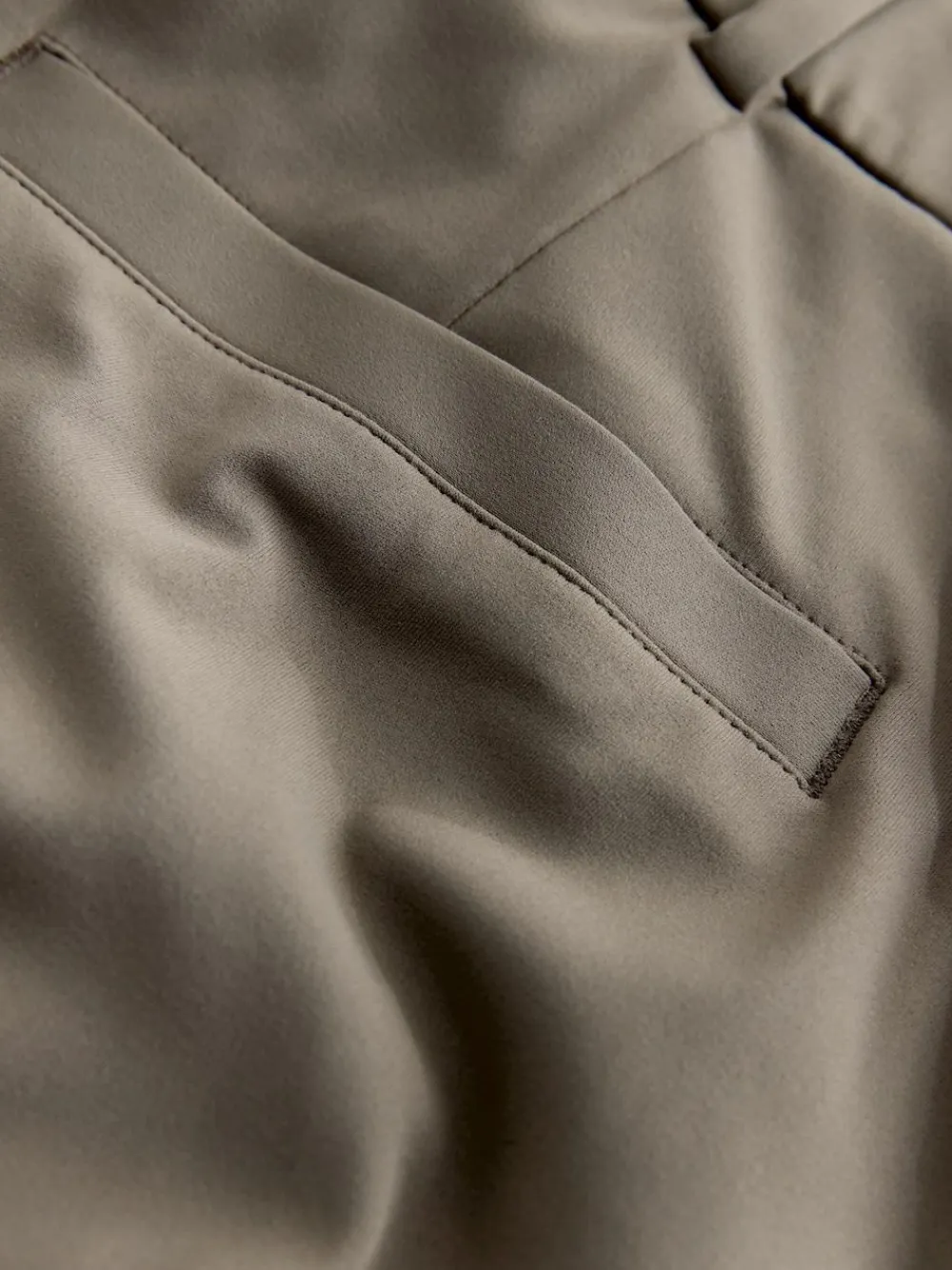 Achieve elevated styling with these sophisticated jersey tailored trousers. Featuring a flattering high rise and a modern wide leg, the soft taupe colour ensures versatility. The pleated design and full length create a polished silhouette, making these smart jersey trousers perfect for chic office wear or formal day events. High rise, full length Wide leg tailored fit Pleated detail Jersey smart fabric Regular to fit inside leg 29″ / 74cm. 73% Nylon, 27% Elastane.