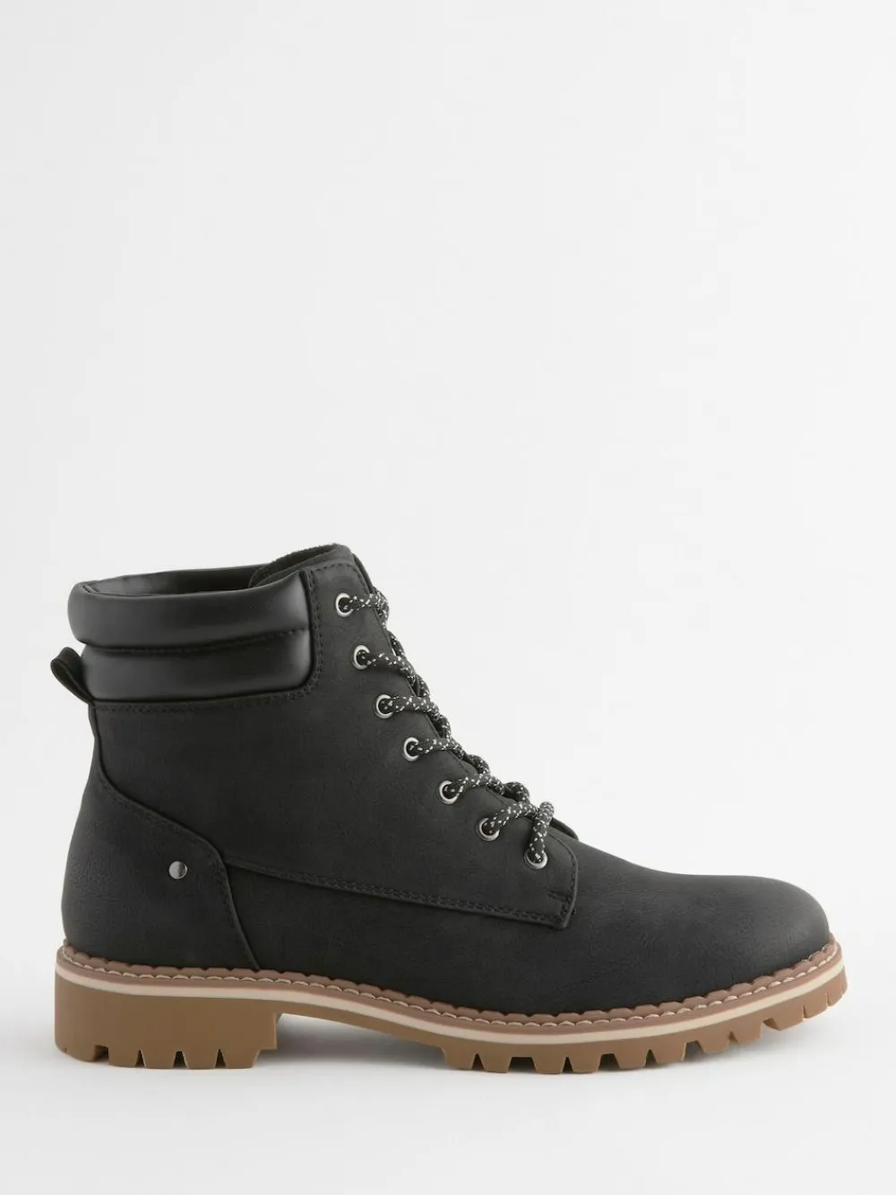 These versatile black ankle boots look great with your casual and winter looks, featuring a faux leather upper with overlays and padded ankle detailing, a lace-up fastening and a textile lining. A Forever Comfort® cushioned footbed ensures fantastic all-day comfort, finished with a durable cleated sole. Regular width Ankle height Faux leather upper Lace-up fastening Padded ankle Textile lining Forever Comfort® footbed Cleated sole Upper – Other Materials, Lining & Sock – Textile, Other Materials, Sole – Other Materials.