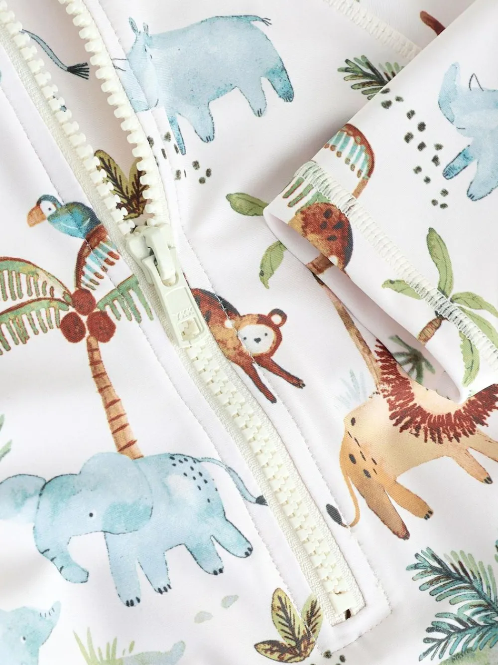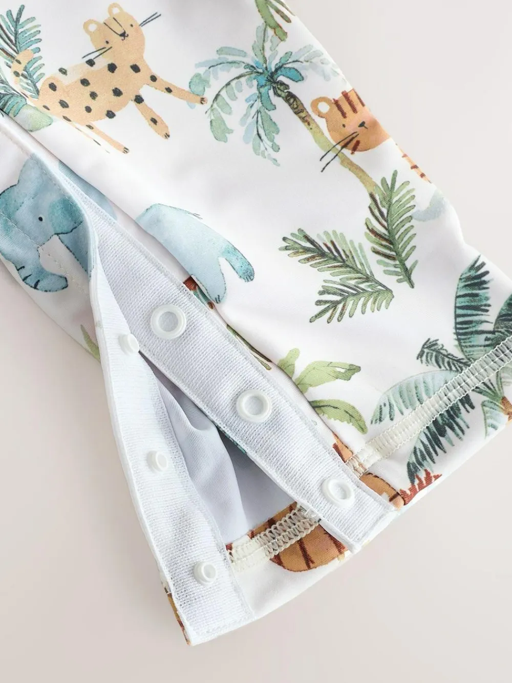 Machine washable. Sunsafe all in one Main 82% Recycled polyester, 18% Elastane. Lining 92% Recycled polyester, 8% Elastane. Hat Main 82% Recycled polyester, 18% Elastane. Lining 82% Recycled polyester, 18% Elastane.