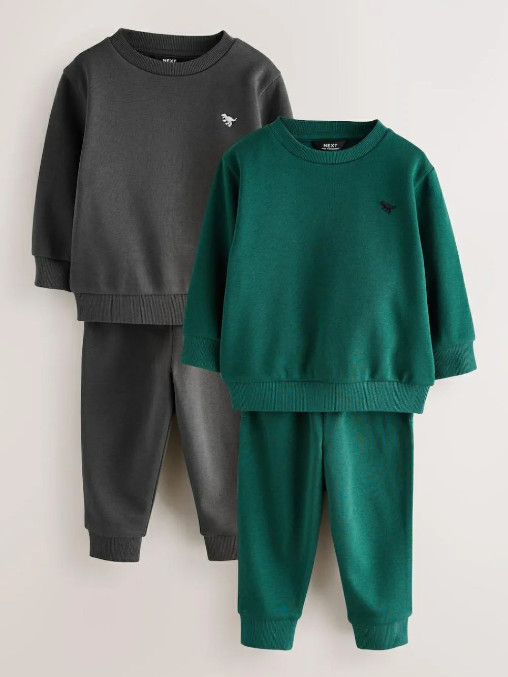 Clearance Next Sweatshirt and Joggers Set 2 Pack (3mths-7yrs) Charcoal Grey/Green