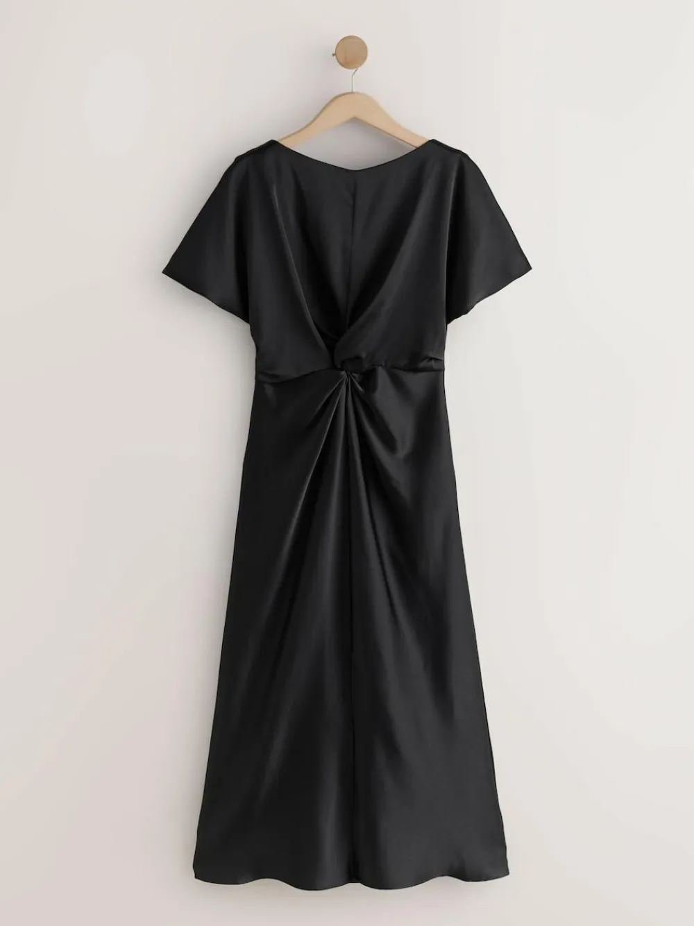 Be the first to review “Clearance Next Textured Satin Short Sleeve Twist Front Midi Dress Black” Cancel reply