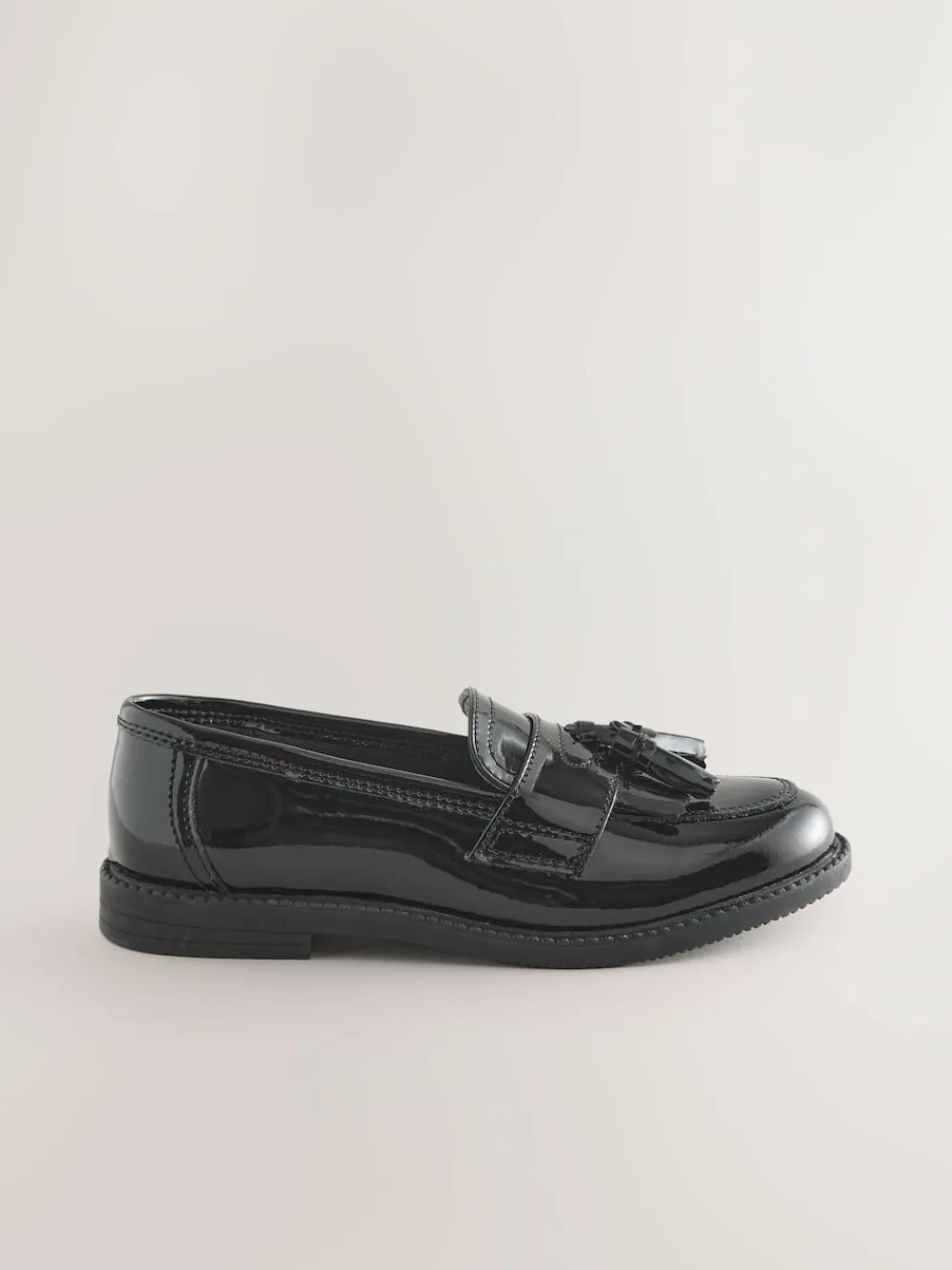 Clearance Next Wide Fit (G) Leather Tassel Loafer School Shoes Black Patent