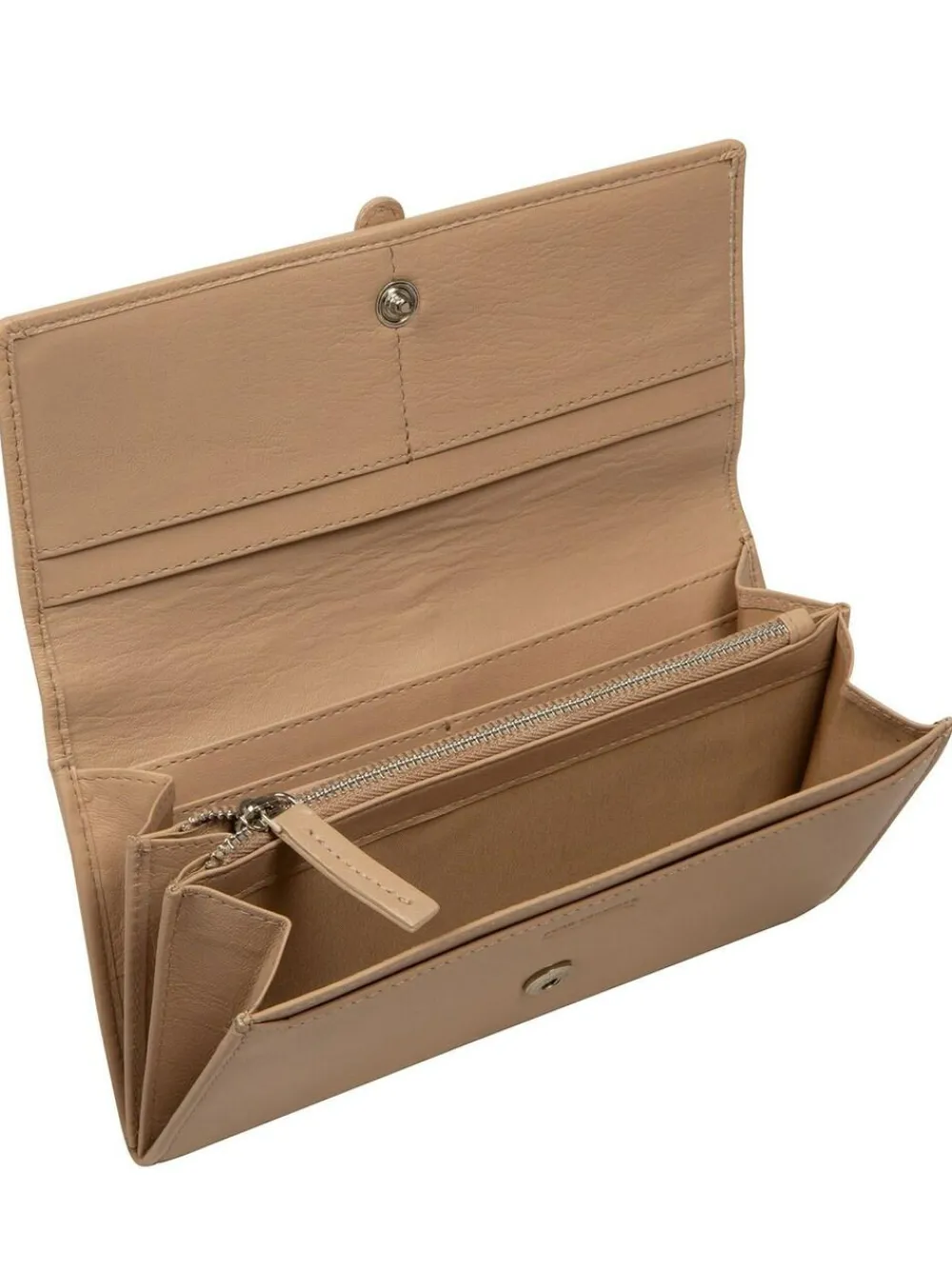 From Pure Luxuries London, the Harriet bi-fold purse is crafted from natural leather for a soft to the touch and smooth finish. An attractive mock buckle press stud secures the design and inside is four card slots. The accordion design allows easy access to the four slip pockets which are perfect for notes and receipts alongside a zipped coin pouch in the centre. This style is finished with the Pure Luxuries logo blind embossed both on the exterior and interior for an elegant finishing touch. Height 11cm Width 19cm Depth 3cm Main 100% Leather. Lining 100% Cotton.