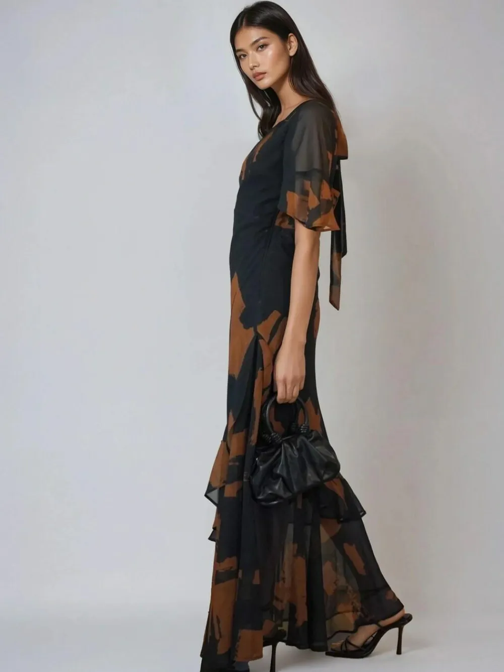 Be the first to review “Clearance Religion Black Sophisticated Liv Maxi dress with delicate frills in abstract print” Cancel reply