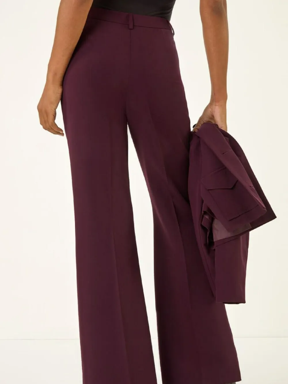 These chic bootleg trousers are a wardrobe staple this season. Featuring stylish front jet pocket details and a flattering bootleg cut, these trousers are perfect for both work and smart casual occasions. The pintuck centre front adds a touch of sophistication to the classic design. Pair with a crisp shirt and heels for a polished and professional look that will take you from day to night with ease! Regular inside leg length 30″ / 76cm. Machine washable. 90% Polyester, 10% Elastane.