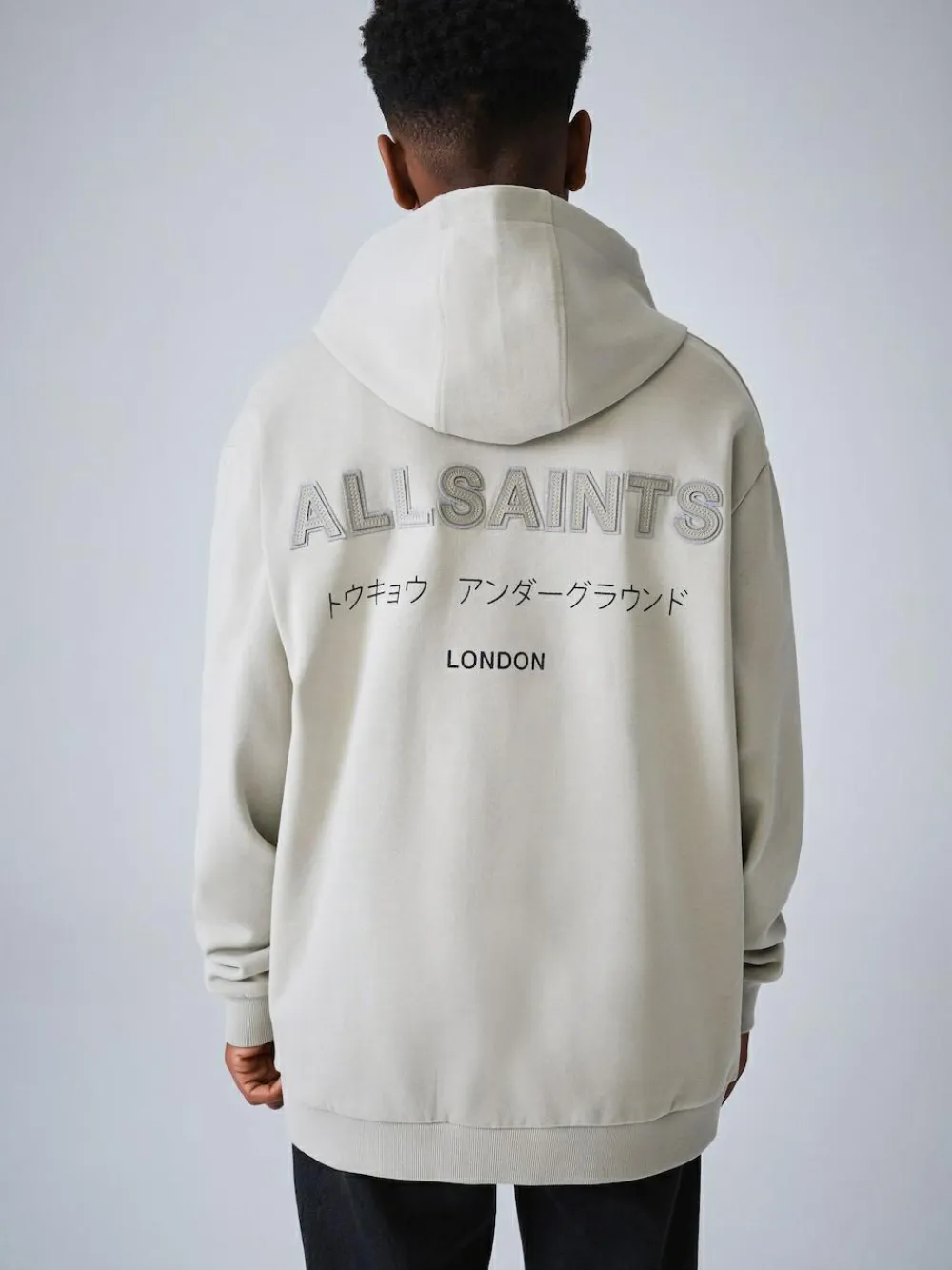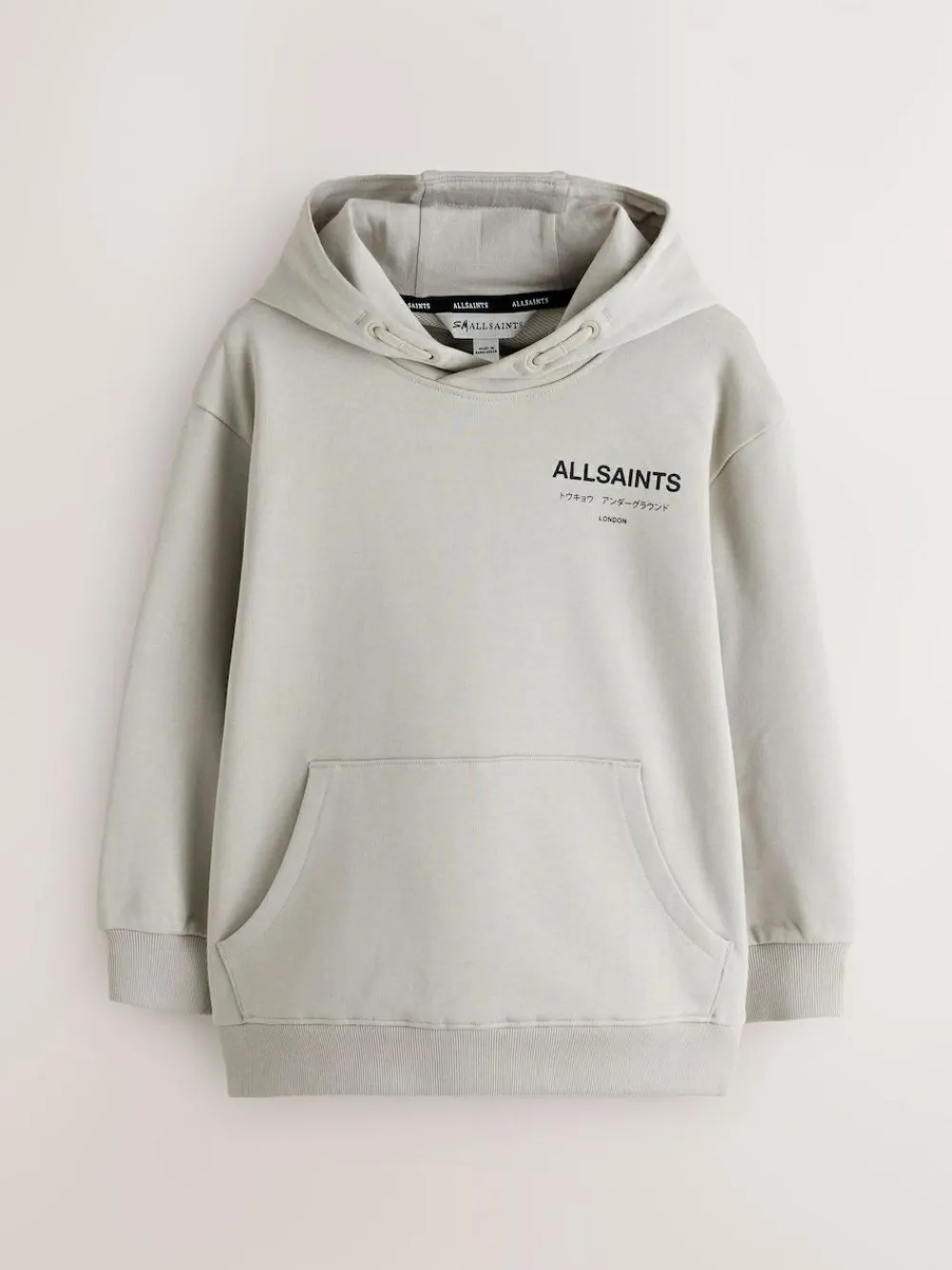 Keep them wrapped up in style with this smALLSAINTS Underground hoodie. A unisex design that delivers an oversized fit, this classic jumper made from soft cotton also has a kangaroo pocket on the front with the iconic AllSaints signature logo on the chest and back. Hooded Oversized fit 100% Cotton Unisex design Machine washable. Main 100% Cotton. Rib 95% Cotton, 5% Elastane.