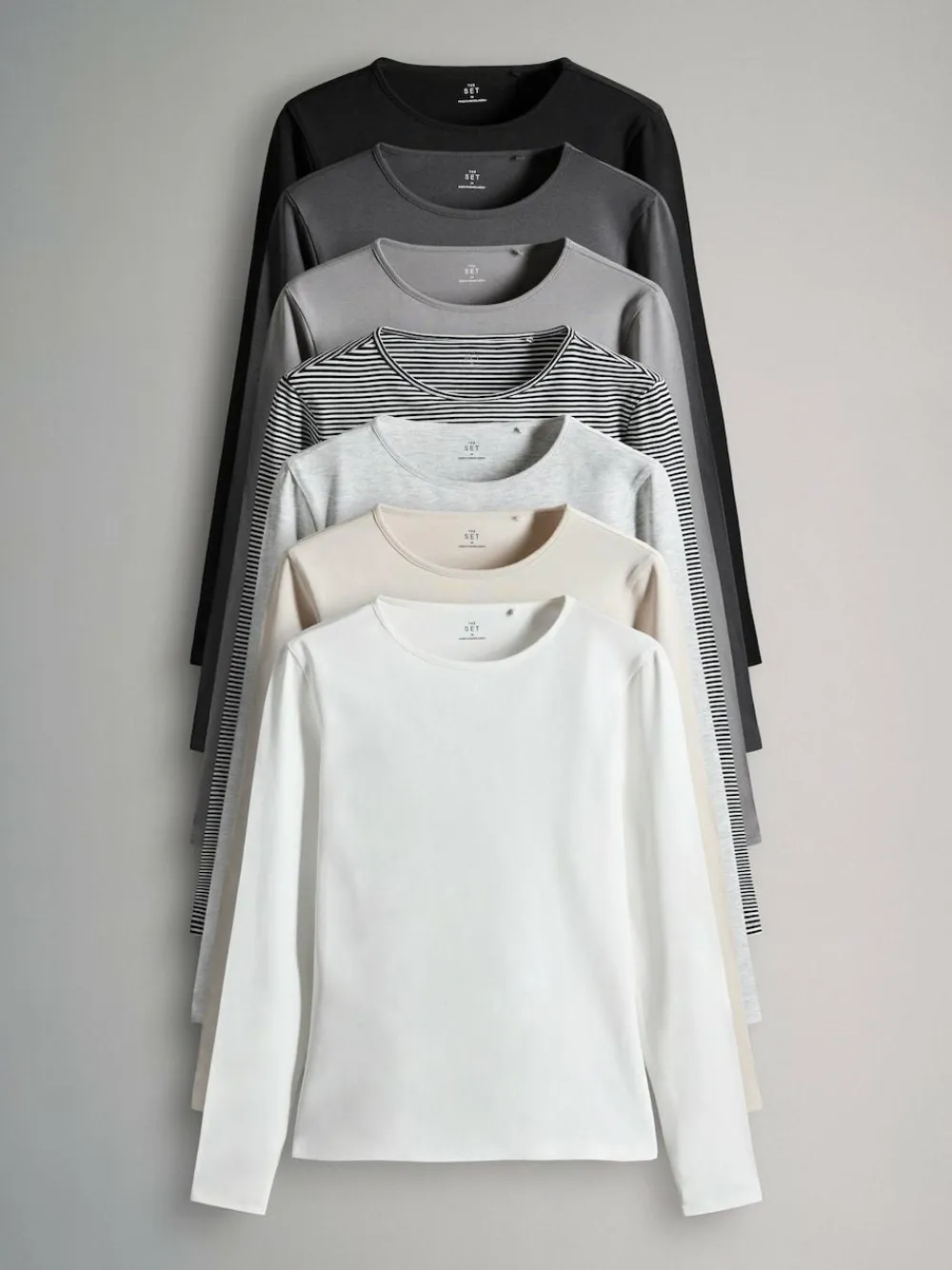 Clearance The Set 7 Pack Long Sleeve Crew Neck T-Shirts Stripe/Black/Grey/White