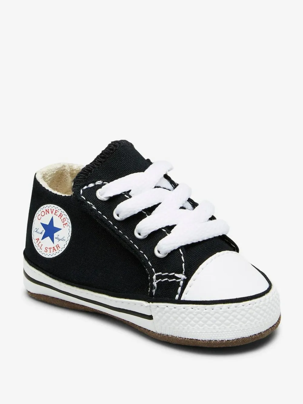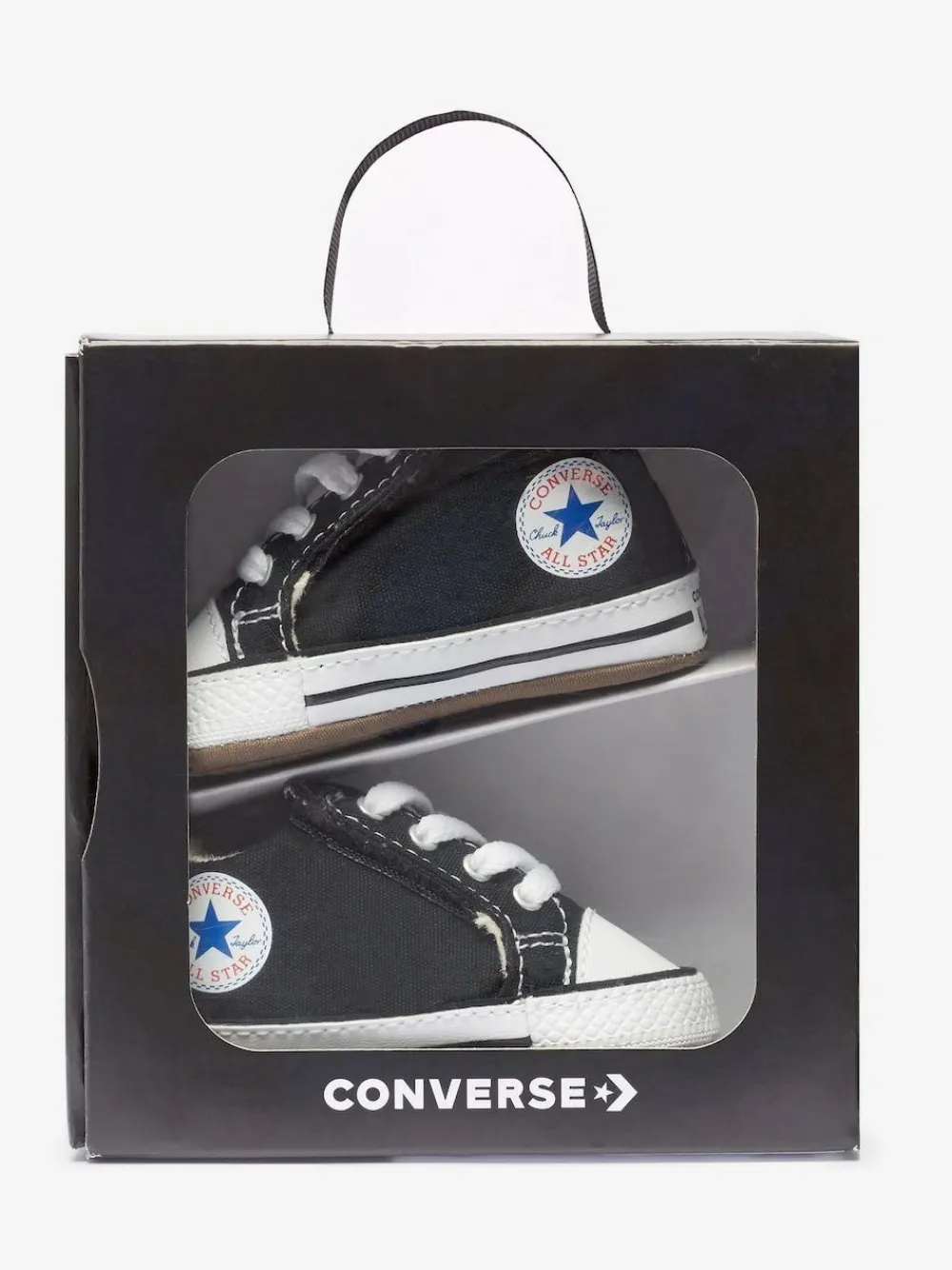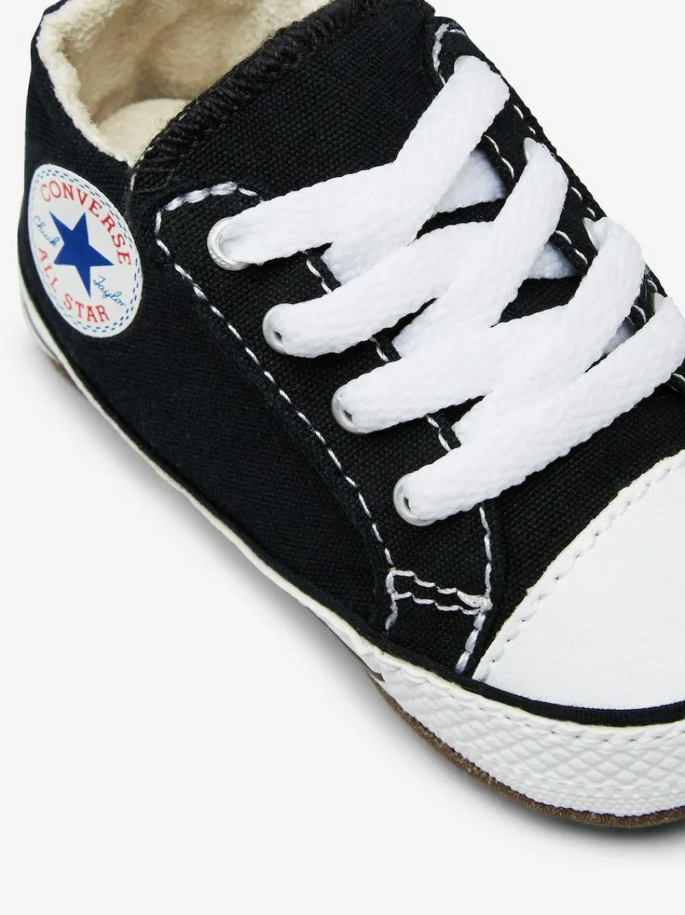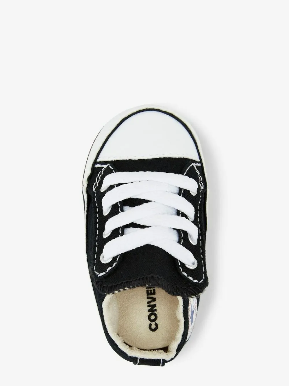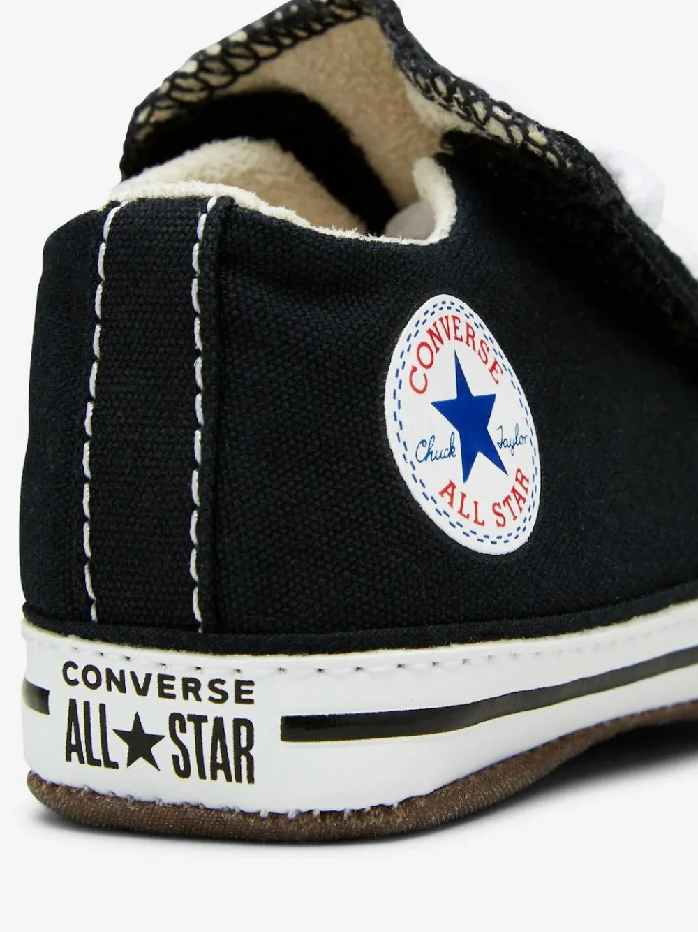 CRIB STAR. Created for the littlest ones, the Converse Black Chuck Taylor All Star Cribster infant shoe is all style and no hassle. Featuring a hook-and-loop mechanism that opens up the entire shoe, this is one of the easiest on and off ever. The lining, stitches, and seams have all been softened to maximize comfort. Complete with a canvas upper and star ankle patch that ties back to the adult original. Soft, kid-friendly lining EVA foam cushioning for comfort Upper – Textile, Lining and Sock – Textile, Sole – Other Materials.