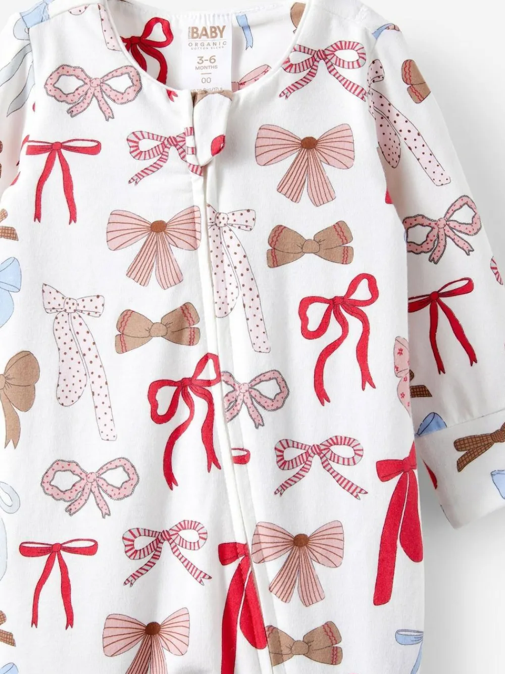 Full-length baby onesie. Crotch gusset gives additional room and added comfort. Fold back foot muffs keep toes toasty warm. 2-way zip with protective anti-catch zip tab.Turn back mittens for sizes up to 3-6months. Machine washable. 95% Cotton, 5% Elastane.