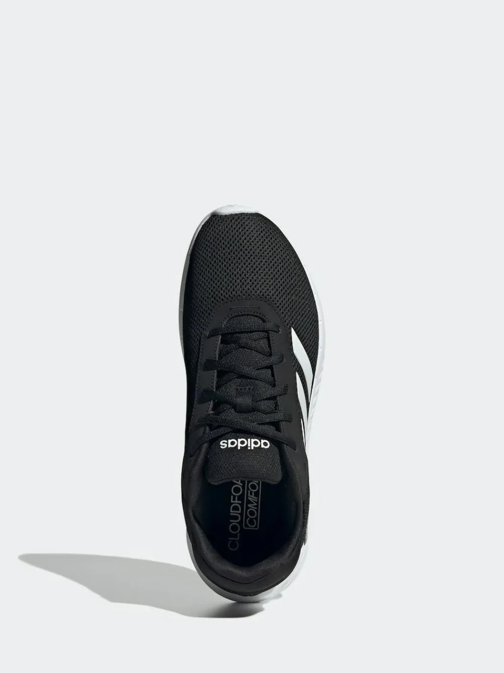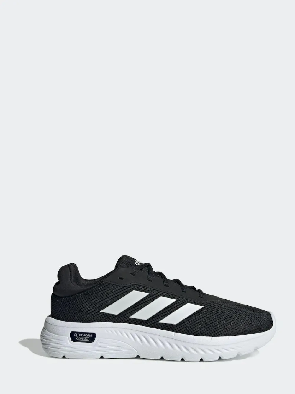 Comfort you can count on. These black adidas sneakers make every outing flow smoothly, while sleek lines keep your style game strong. The lightweight upper is lined for a soft feel against the foot. A Cloudfoam Comfort sockliner provides plush cushioning and a durable outsole grips the ground to inspire confidence no matter where the day takes you. Textile.