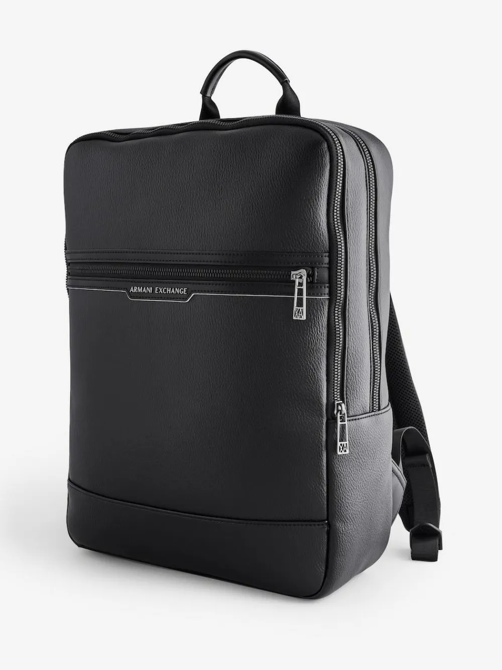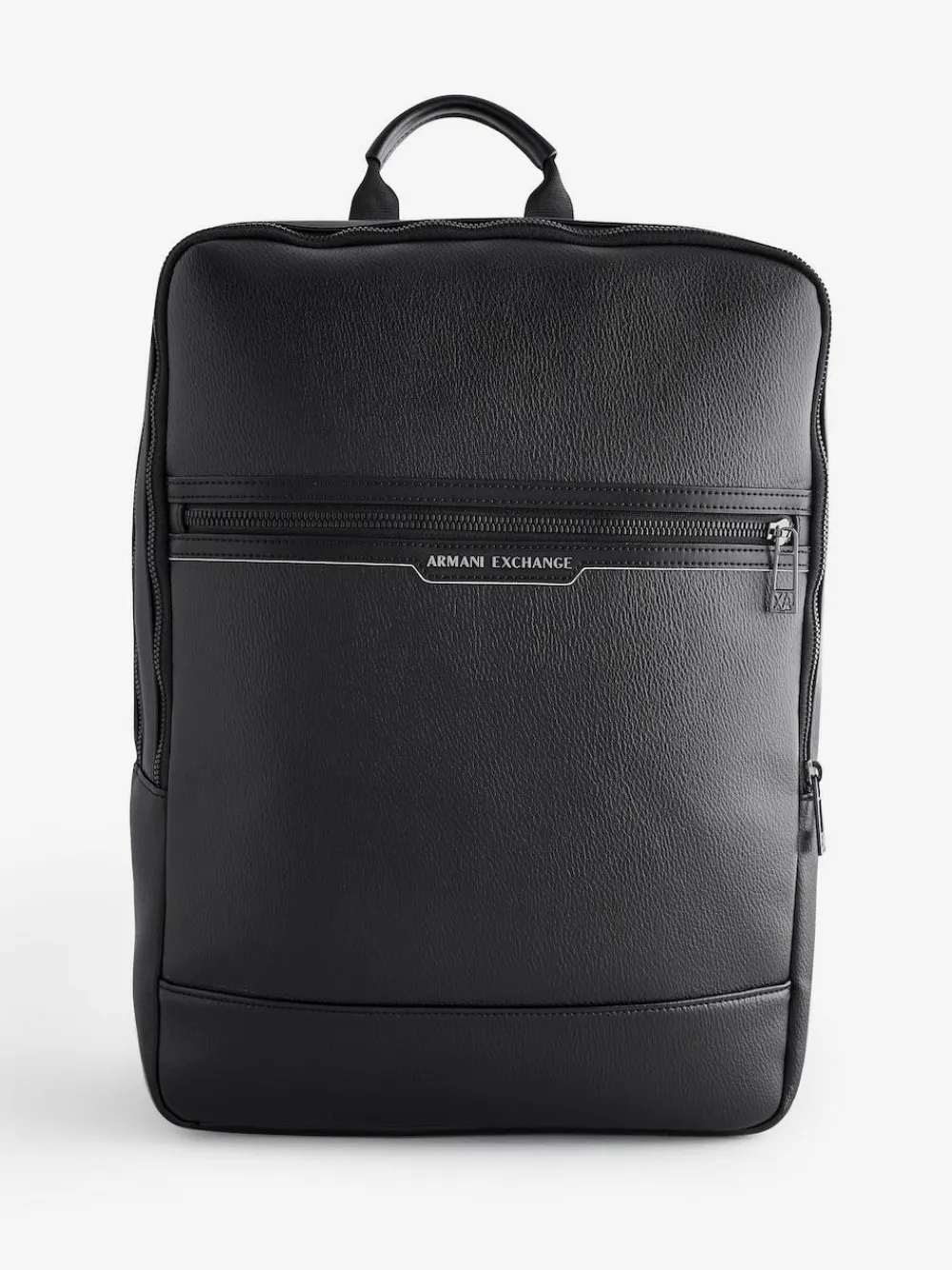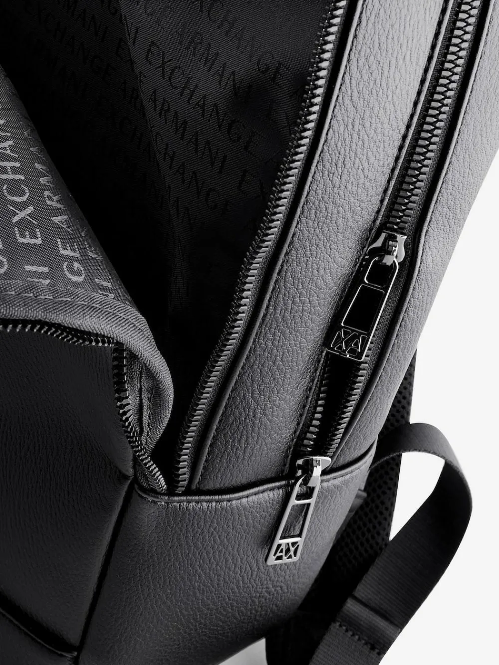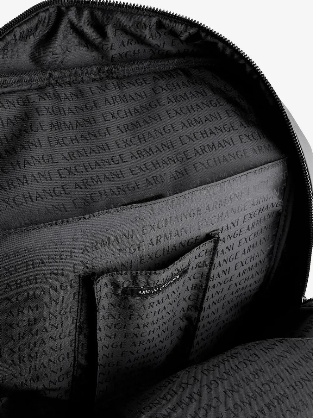 The black Armani Exchange logo backpack offers a perfect mix of functionality and fashion. Ideal for those who want to stand out. 100% Polyester.