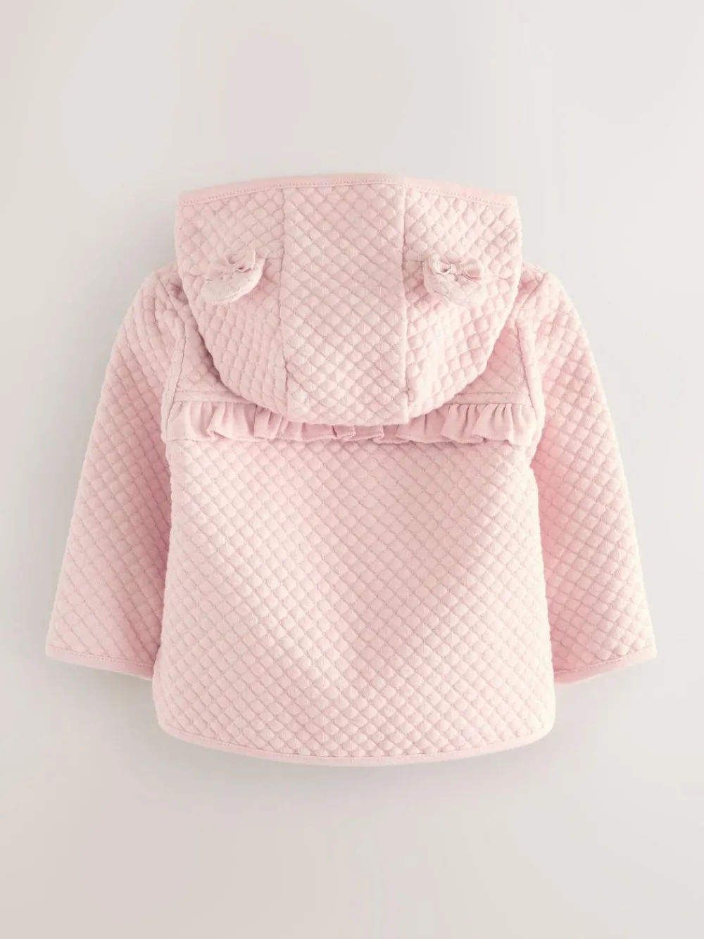 Your little one will look cute and cosy in this quilted hooded jacket from Baker by Ted Baker. This hooded jacket with ears comes in a quilted design in an all over glittered fabric. The layering piece also includes a quilted hood with ears and a gorgeous floral printed lining, not to mention adorable grosgrain bows at the ears. Details include a frill at the yoke seam going from the front to the back, bow shaped pockets and gold Baker branded poppers. The cutest cosy piece your little one will adore. Quilted fabric Lined hood Frill detail Cute and cosy Main 49% Cotton, 47% Polyester, 3% Metallised fibre, 1% Elastane. Lining 100% Cotton.