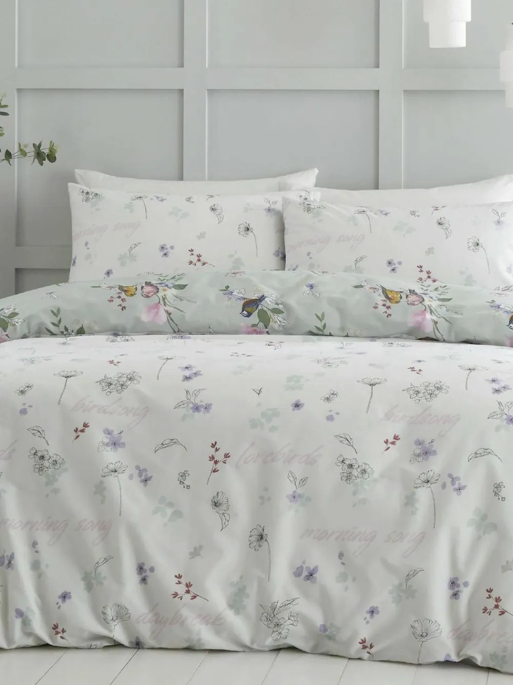Discount Catherine Lansfield Songbird Reversible Duvet Cover and Pillowcase Set Green