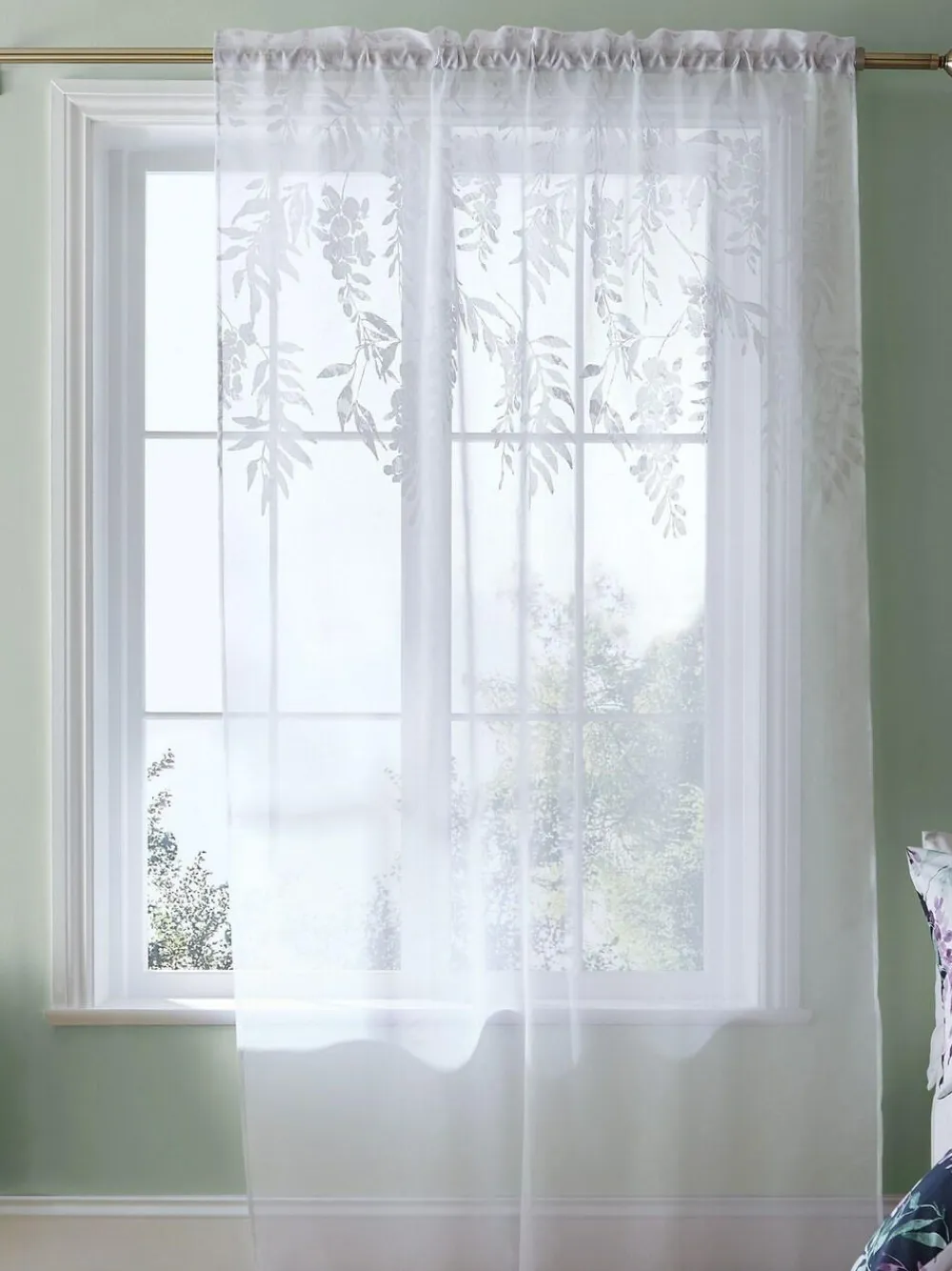 Discount Catherine Lansfield White Wisteria Floral Slot Top Voile Curtain Panel