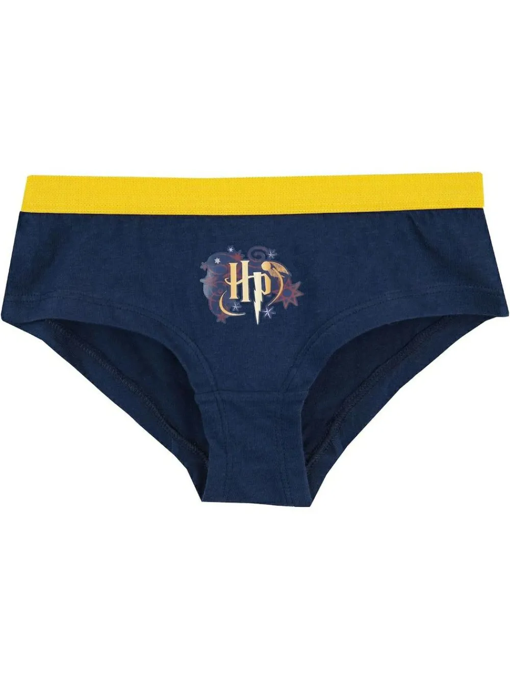 Kids Harry Potter Underwear. This pack of 5 briefs offers vibrant designs featuring magical Hogwarts designs, including owls, stars and moons. Complete with an elasticated waistband in either burgundy or golden yellow, these undies are perfect for your little witch! Machine washable. 100% Cotton.