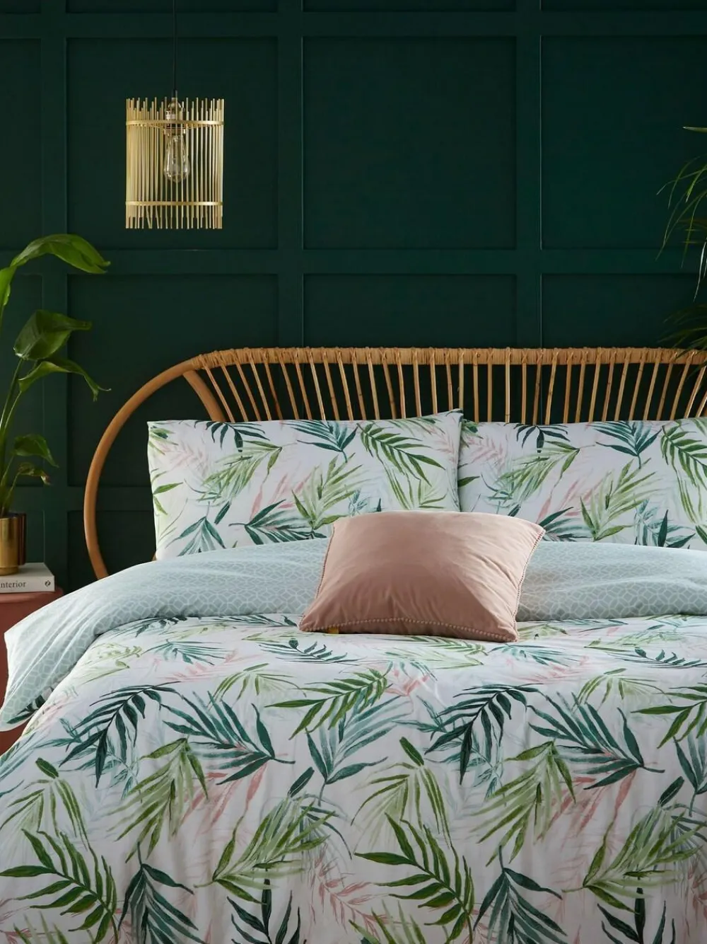 Discount Furn Green Bali Palm Reversible Botanical Duvet Cover and Pillowcase Set