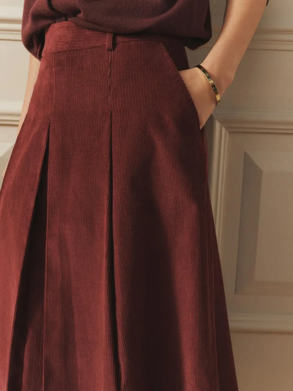 Discount Laura Ashley Burgundy Red Maxi Cord Skirt