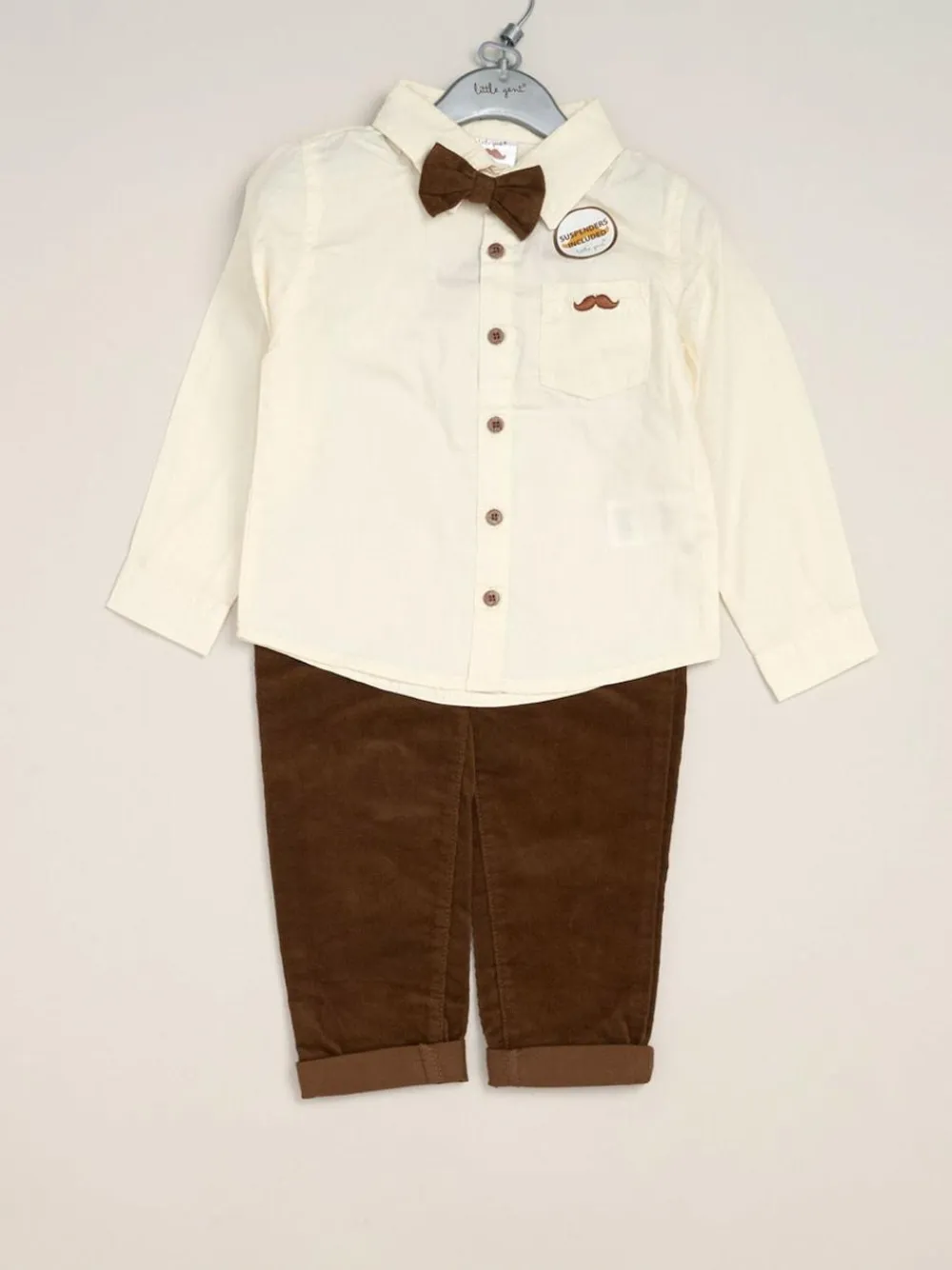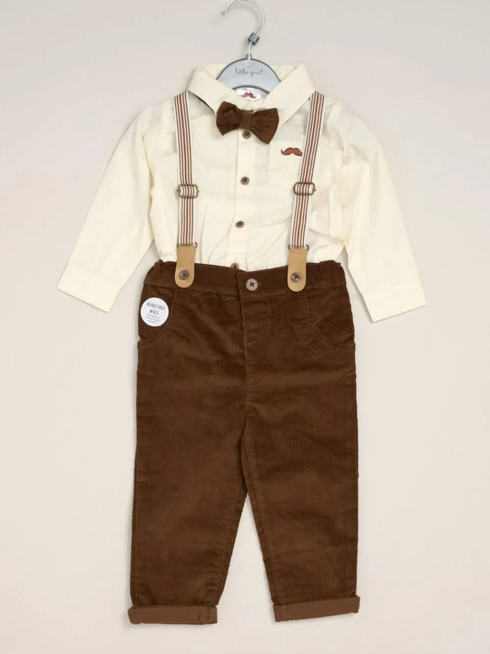 Discount Little Gent Corduroy Bow Tie Mock Shirt and Trousers With Braces Outfit Set