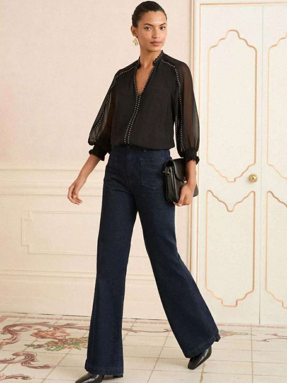 A gorgeous V-neckline and lovely gold harwarde trim on the sleeve and centre front of the blouse which beautifully elevates this blouse. With its 3/4 sleeve, it’s perfect for the spring/summer season.The model wears size 10. Wearing length 68cm Main 53% LENZING™ ECOVERO™ Viscose, 47% Viscose. Sleeve 1 100% Polyester.