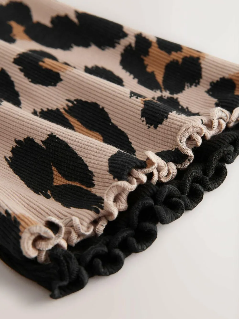 Discount Next 2 Pack Rib Flare Leggings (3-16yrs) Black and Animal