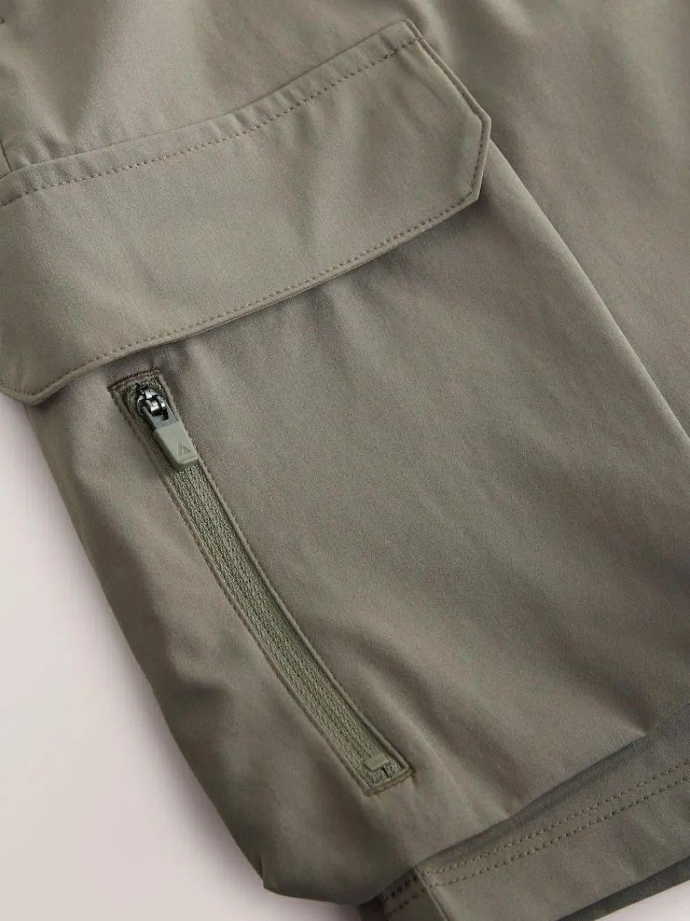 Workout harder and longer in these modern shirts, as part of our Active collection. The shorts are made from a technical fabric that’s comfortable and breathable, featuring an adjustable elasticated waistband, cargo thigh pockets, side pockets and a smaller zip pocket. Active collection Adjustable elasticated waistband Cargo pockets Side pockets Machine washable. 90% Recycled polyester, 10% Elastane.