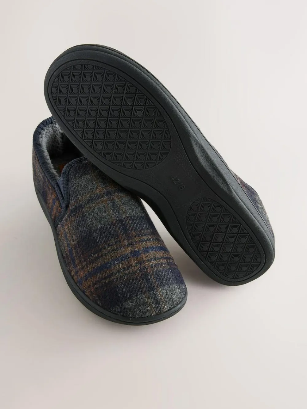 These smart Closed Back Slippers blend classic style with ultimate indoor comfort. Featuring a rich plaid fabric outer and a warm inner lining, they offer a secure, cosy fit. These navy slippers are equipped with a sturdy sole for support and MicroFresh technology to keep them feeling fresh. Available in standard men’s shoe sizes. This product contains the biocide Silver Chloride which treats odour-causing bacteria, keeping your slippers fresh. Classic plaid fabric outer Secure closed back style Sturdy sole for support Features MicroFresh technology Available in standard shoe sizes Best for comfortable indoor wear Upper – Textile, Lining & Sock – Textile, Sole – Textile, Other Materials.