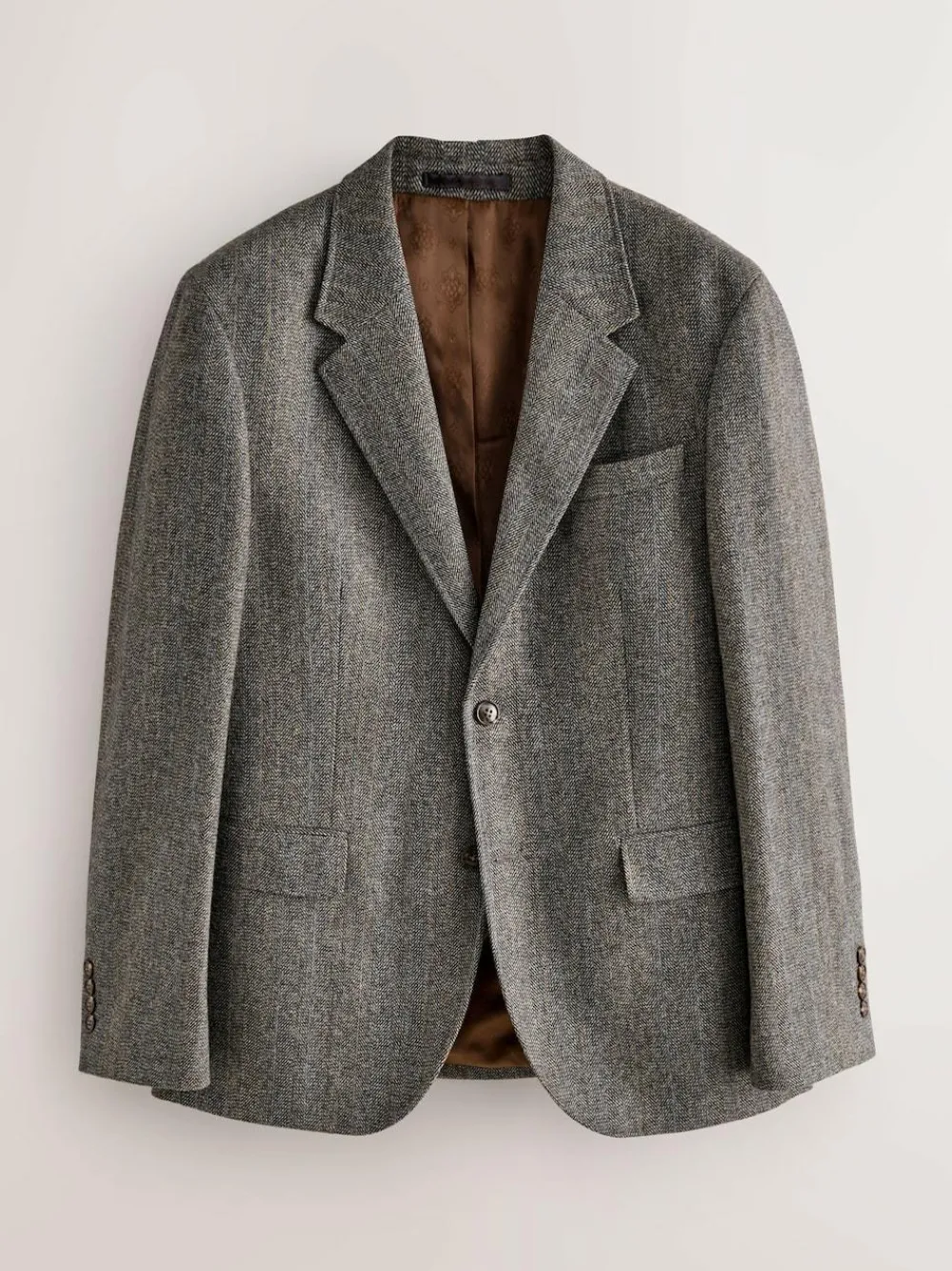 Showcase a polished look with this grey suit jacket. The slim fit and a sophisticated herringbone stripe pattern create a smart silhouette. Finished with a classic notch lapel, a contrast pull-out pocket square, and a luxurious jacquard lining, it is a stylish and practical choice for any formal occasion. Slim fit Herringbone stripe wool-blend fabric Notch lapel Contrast pull-out pocket square Jacquard lining Button fastening Functional pockets Part of a 3 piece suit set Check out The Suit Shop for more inspiration – https://www.next.co.uk/men/the-suit-shop Main 57% Recycled wool, 33% Recycled polyester, 7% Recycled Nylon, 3% Recycled acrylic. Lining 100% Recycled polyester.