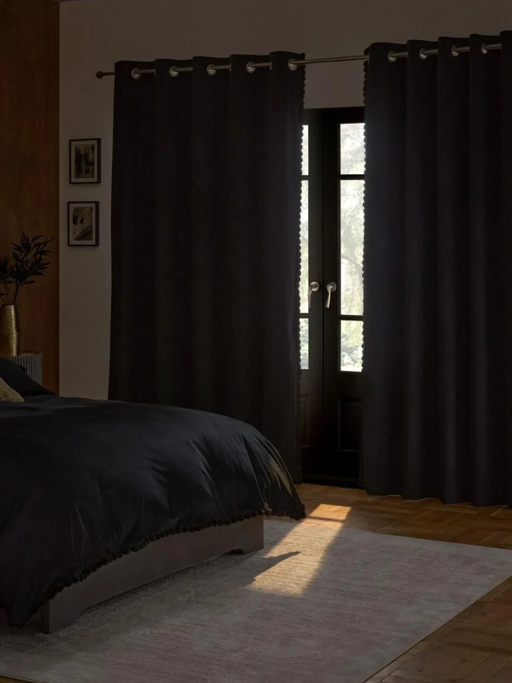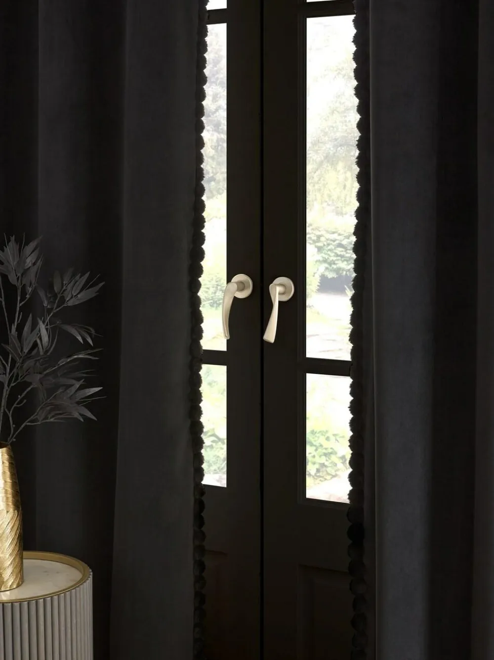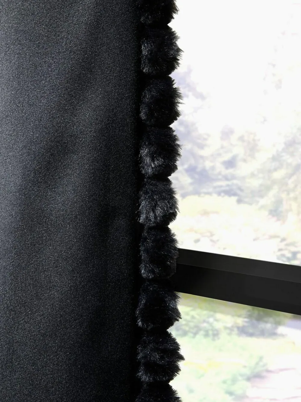 Discount Next Matte Velvet Faux Fur Trim out/Thermal Eyelet Curtains Black