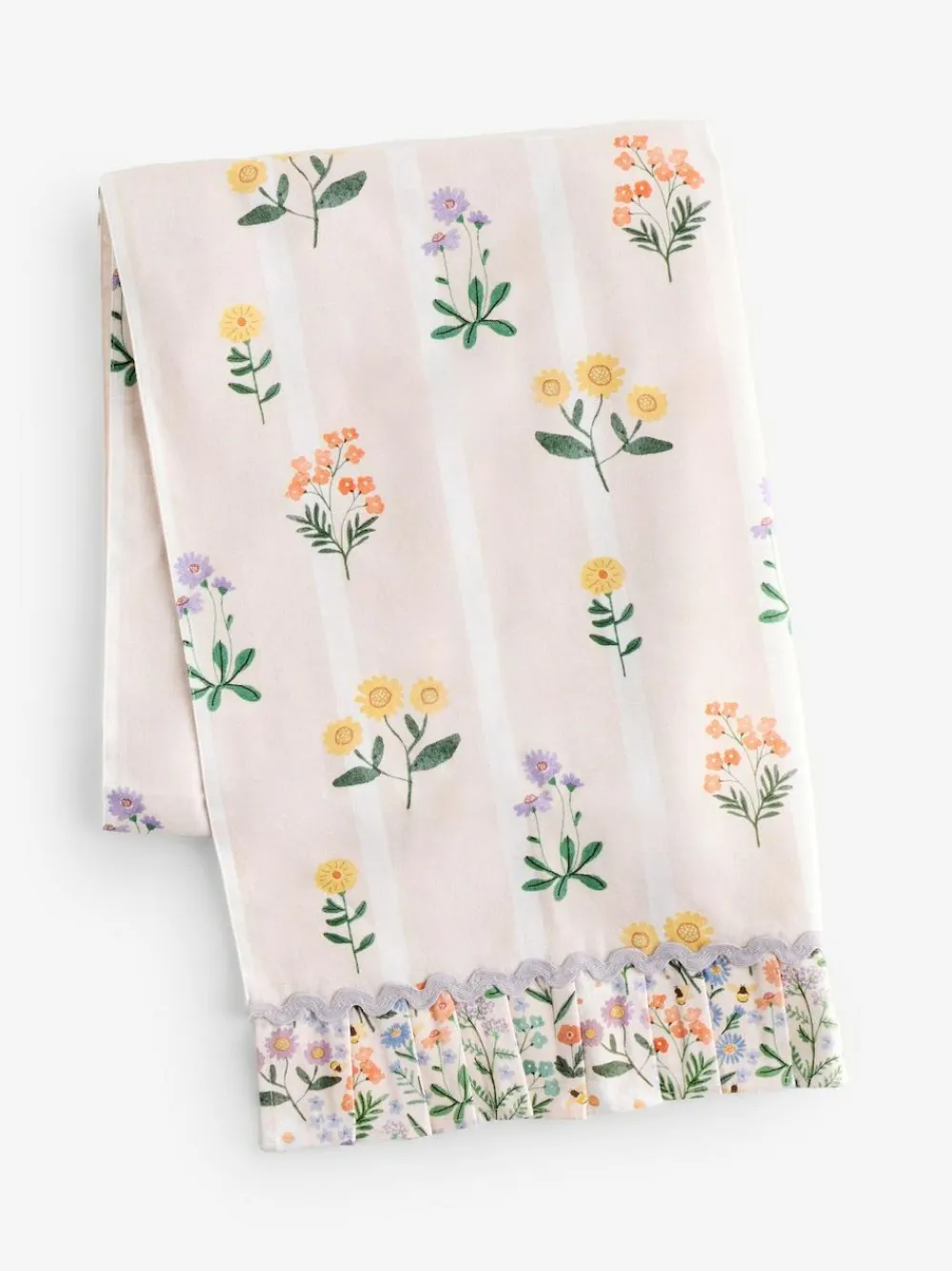 Add some Springtime joy to your dining table with this beautiful Maisie floral table runner. Featuring our hand-drawn ditsy print with a fun ric rac trim and frill on each end. Small Length 178cm / Width 40cm Large Length 220cm / Width 40cm Machine washable. 100% Cotton.