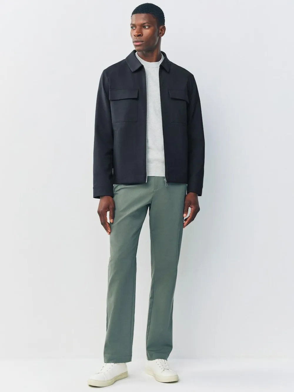 Refine your casual look with this smart technical shacket in navy blue. The stretch fabric provides a comfortable fit and enhanced movement, while the classic collar and zip-through fastening create a sharp silhouette. This is a versatile layering piece perfect for both smart and casual occasions. Stretch fabric Zip-through fastening Collar Technical shacket 51% Cotton, 46% Nylon, 3% Elastane.