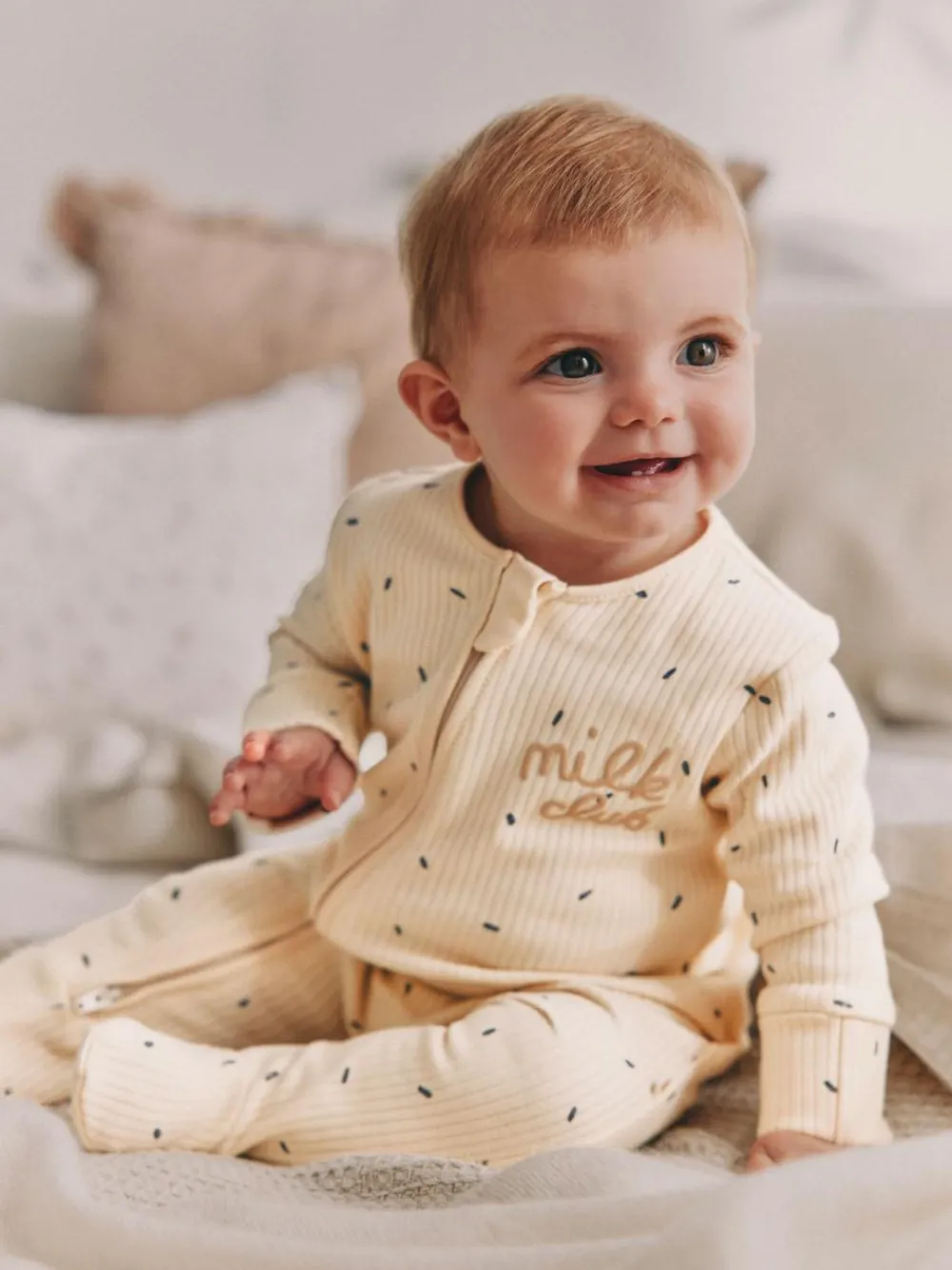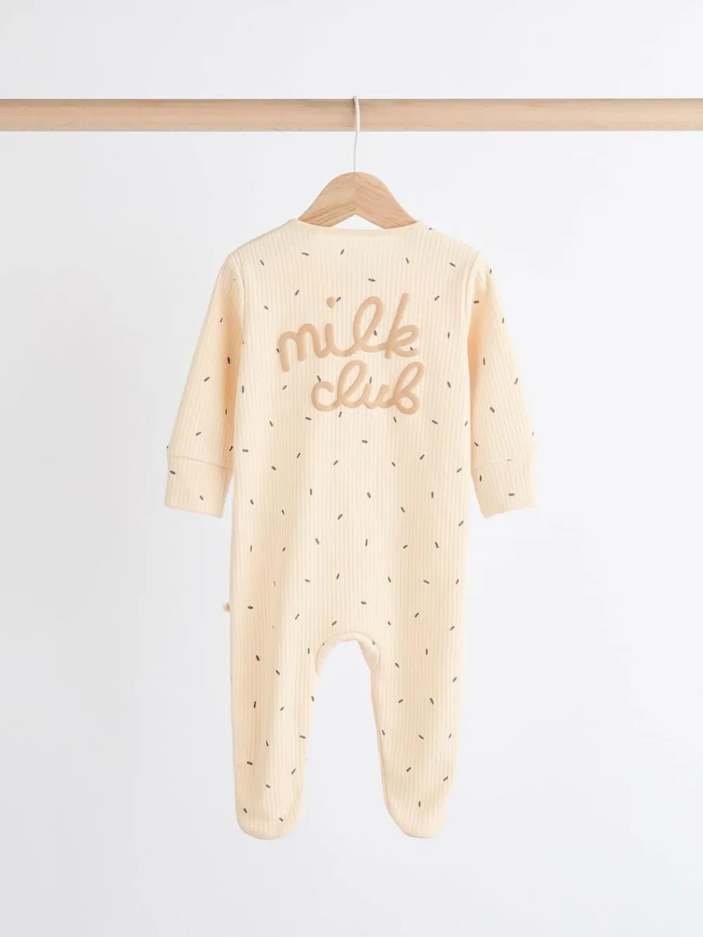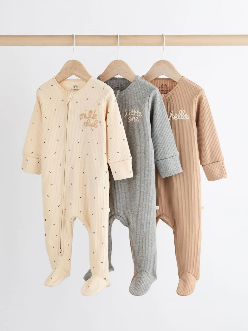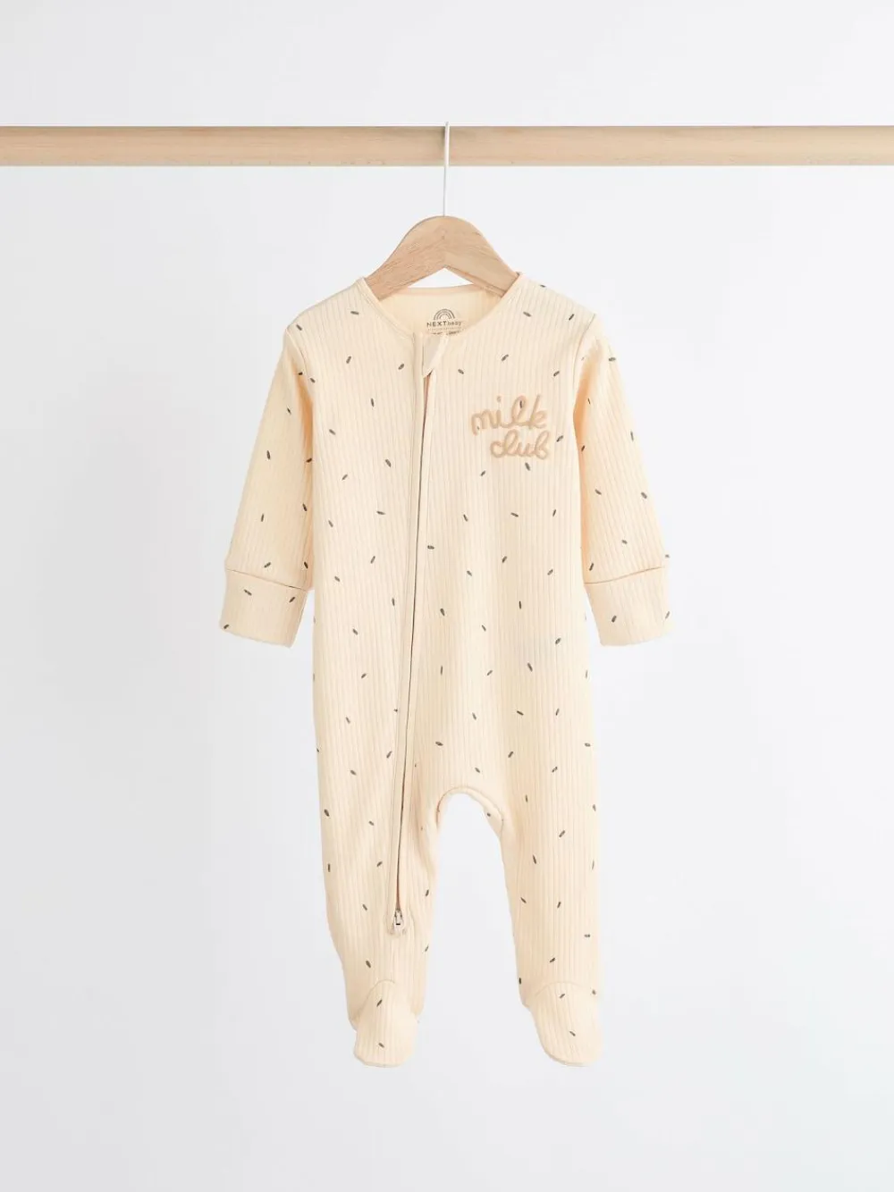Discount Next Neutral Milk Club Baby Two Way Zip 100% Cotton Sleepsuits 3 Pack (0mths-2yrs)