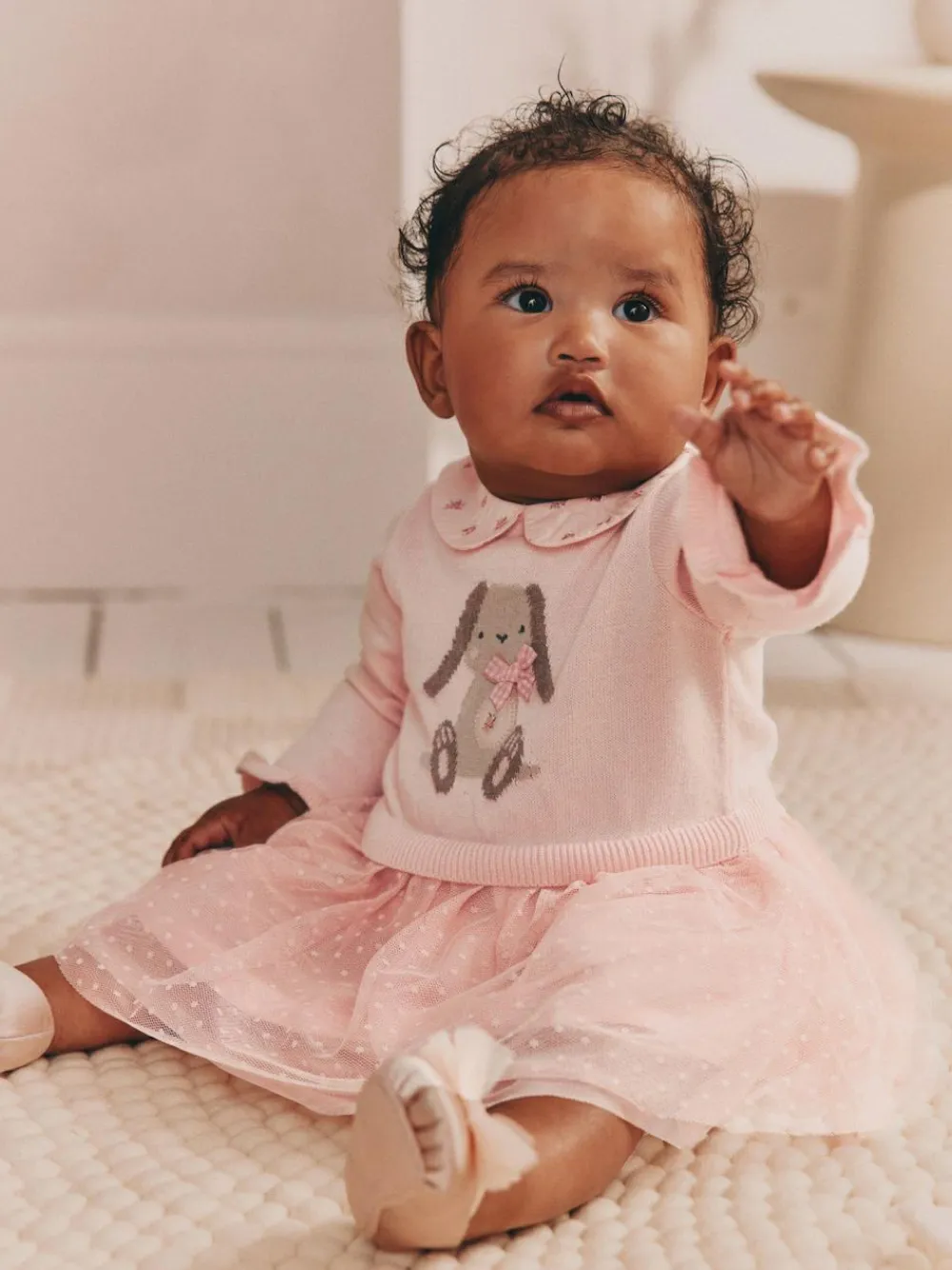 Discount Next Pink Bunny Baby Knitted Twofer Dress (0mths-2yrs)