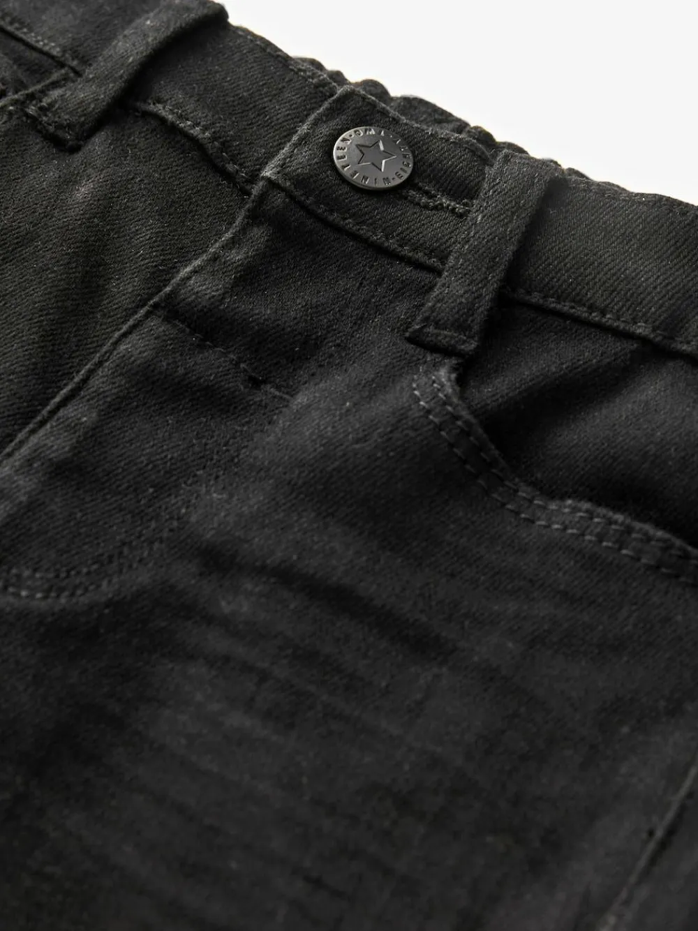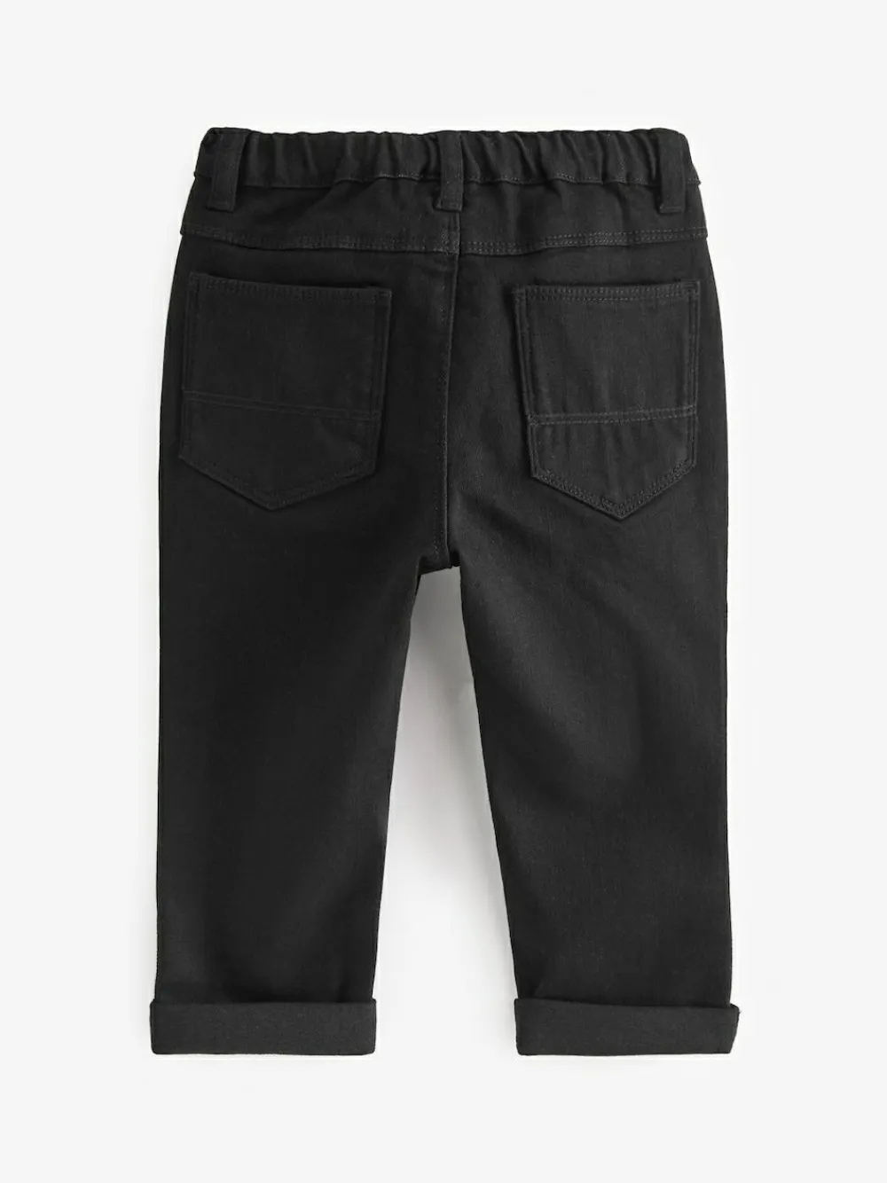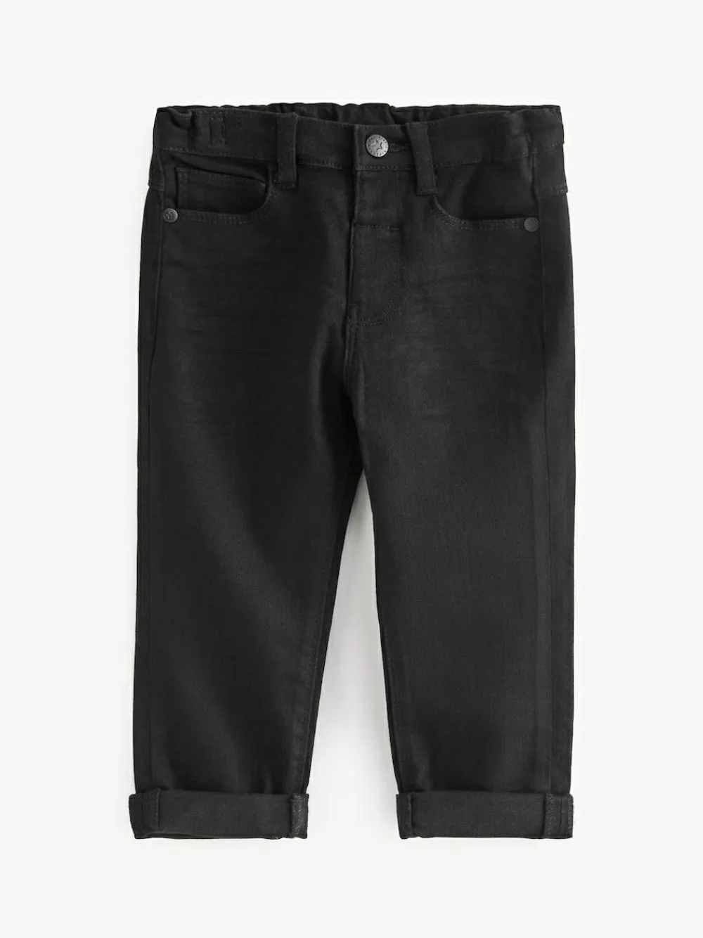 Cute and comfy, our black jeans will be a wardrobe must-have for your little one. Crafted from a soft and stretchy cotton blend, the classic silhouette is further complemented with a traditional five-pocket design and a zip fly and button fastening. Team them with their favourite jumper or T-Shirt and trainers for the perfect playtime look. Regular fit Comfortable stretch fabric Snap fastening with mock fly Five-pocket styling Belt loops 71% Cotton, 25% Polyester, 2% Viscose, 2% Elastane.
