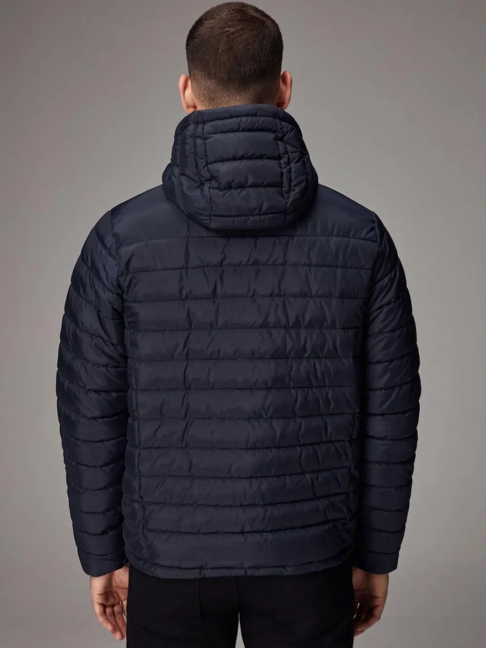 A stylish layer to add to your core outerwear, our navy blue lightweight puffer jacket is sleek, comfortable and stylish. Designed in a lightweight, shower resistant fabric with adjustable toggle pull and handy hood. Puffer jacket Lightweight Shower resistant Hooded Adjustable toggle pull Main 100% Recycled polyester. Lining 100% Recycled polyester.