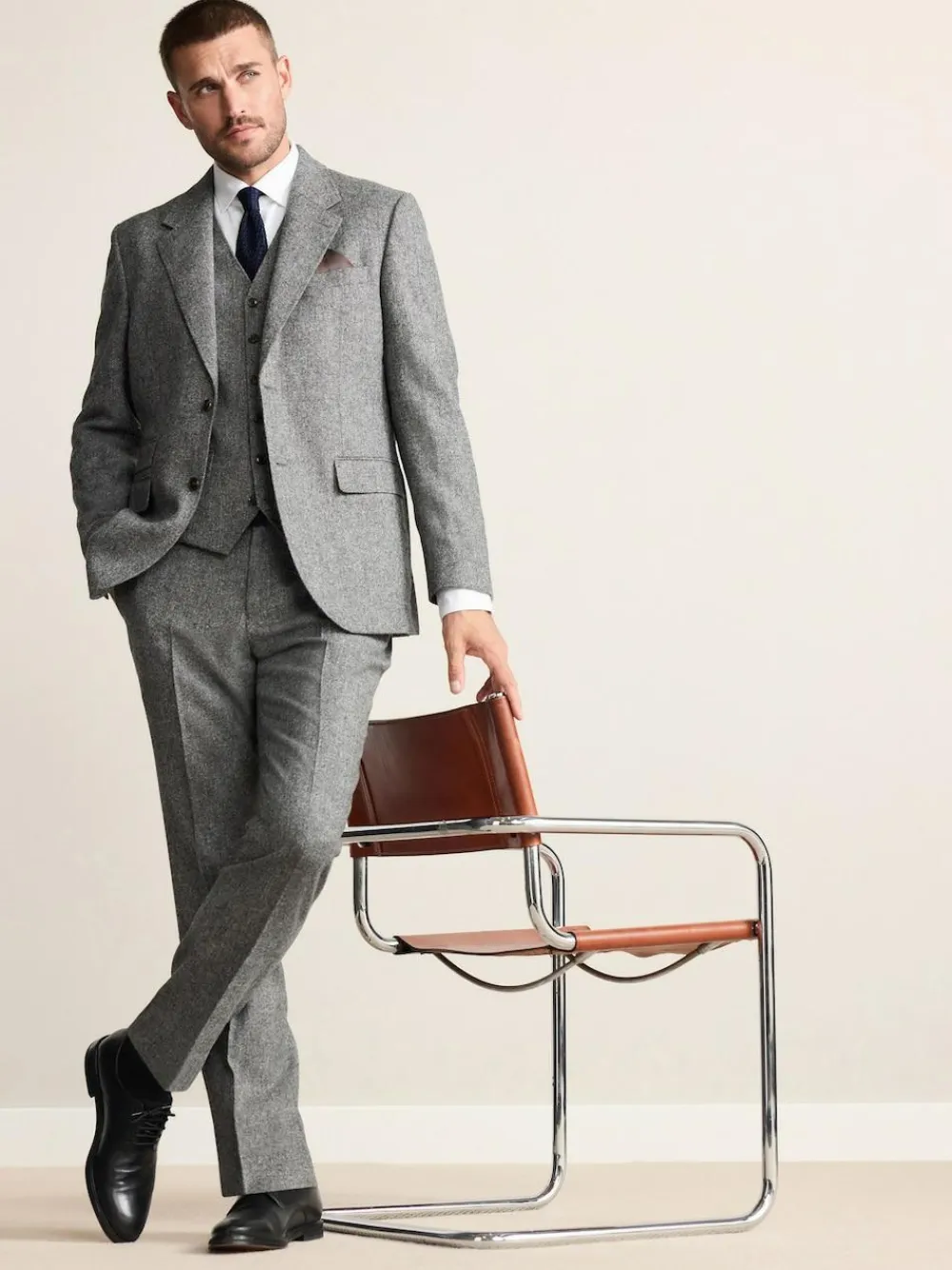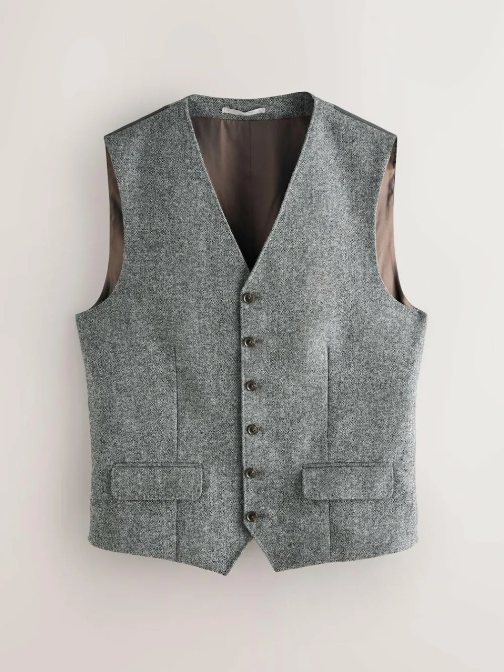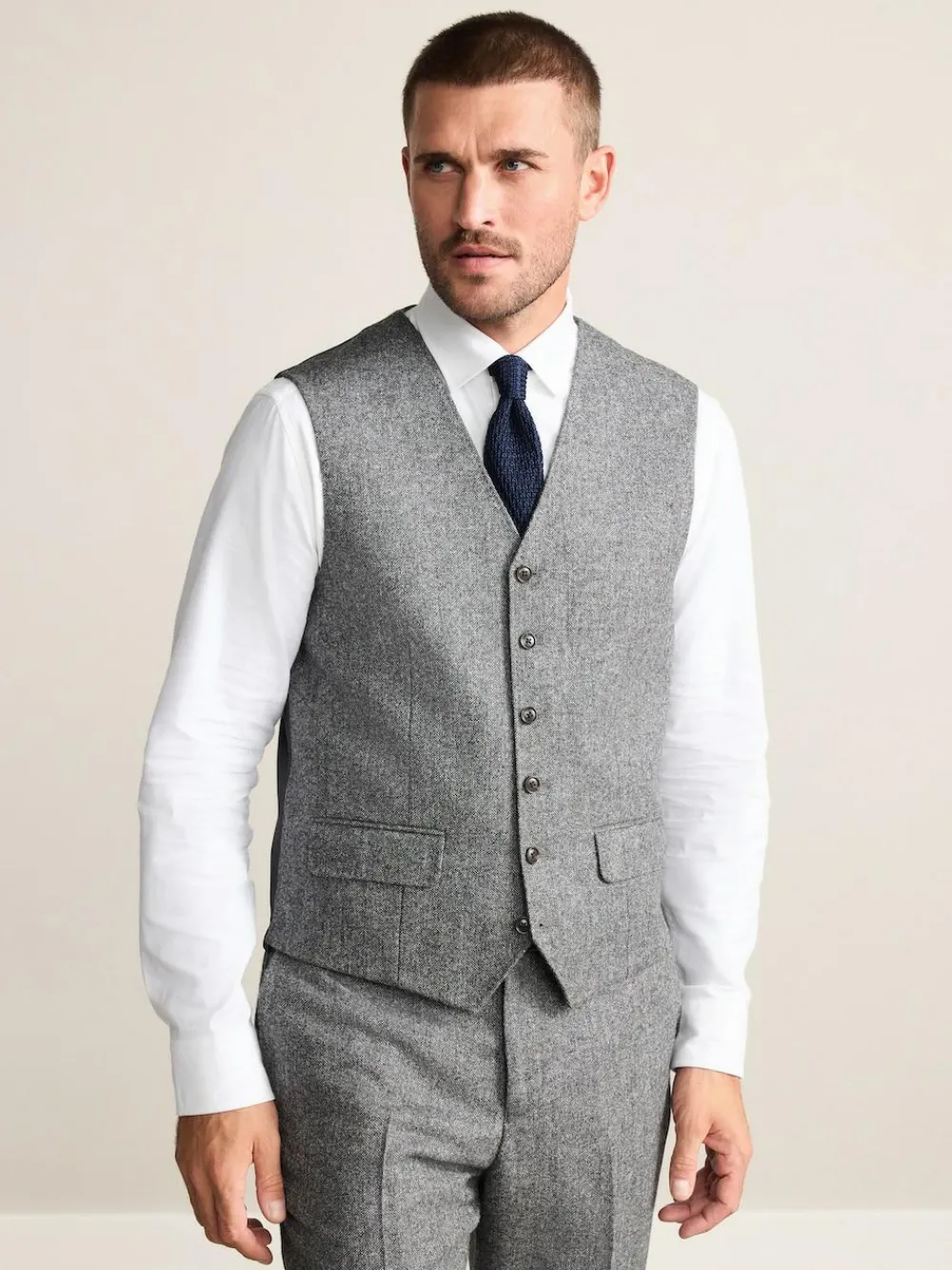 Discount Next Signature Abraham Moon 100% British Wool Donegal Suit Waistcoat Grey