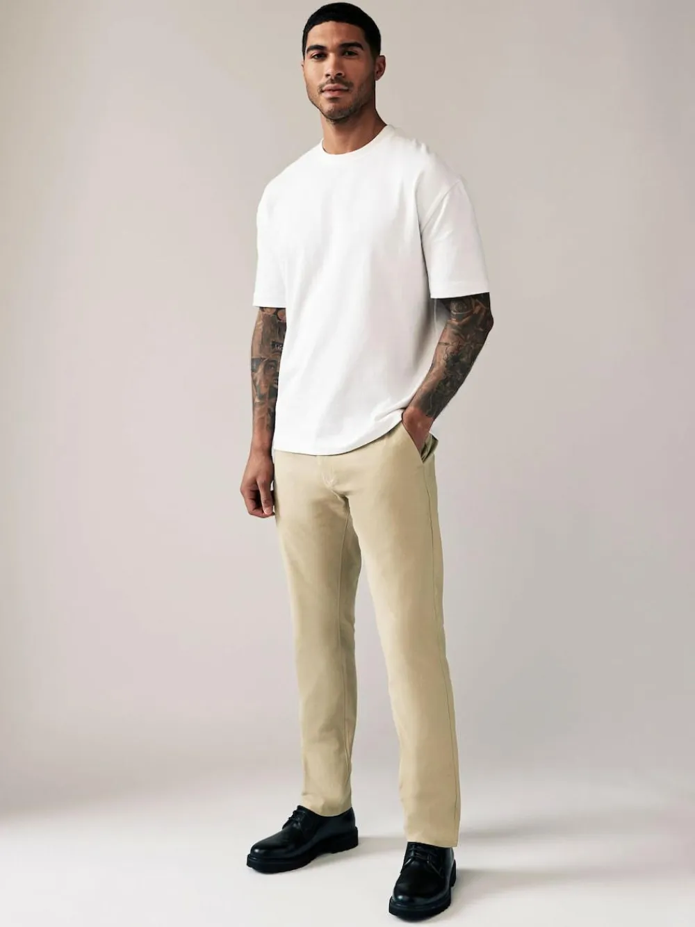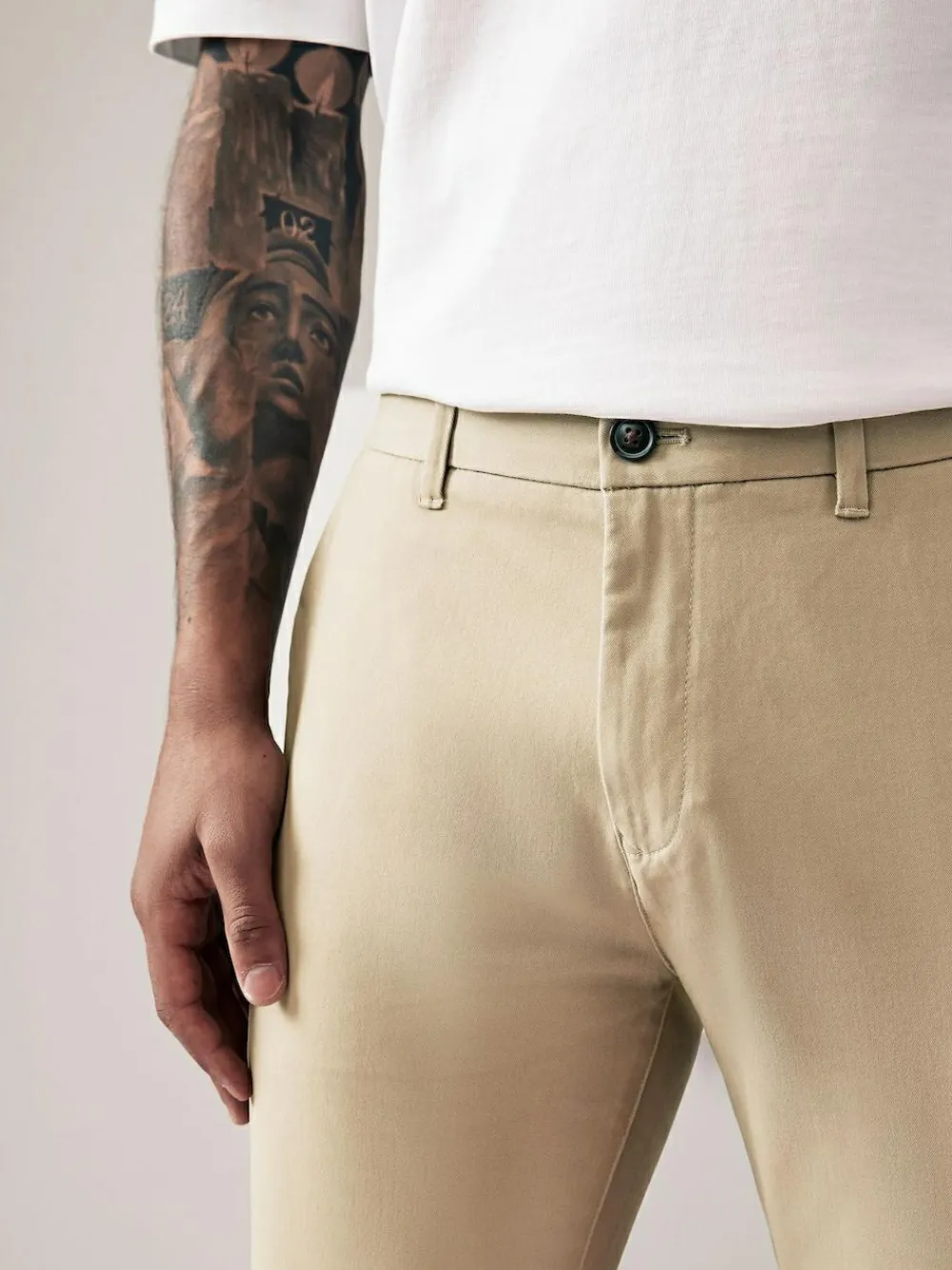 A wardrobe staple, our versatile stone chino trousers are made from a cotton stretch fabric for comfort and style all in one. Designed in a classic chino silhouette, they look great dressed up or down. With two functional back pockets, our variety of fits, colours, and leg lengths ensure you can find your perfect match. Also available with a modern update, our elasticated waist styles offer an adjustable fit that’s right for you, and our pleat chinos offer a choice in an everyday classic. Cotton stretch fabric Chino trousers Zip fly and button front fastening Side slip patch pockets Belt loops Welted patch pockets to the rear Next – Your ultimate style destination for all of life’s essentials. With quality at the heart of everything we do, Next interprets the latest trends to create modern, effortless, easy-to-style pieces for your home and wardrobe. The hottest brands and the latest trends: find them all here. Slim fit chinos contour the thigh and skim closer to the body, with a narrower leg shape on the calf for a tailored and more streamlined silhouette. Machine washable. 98% Cotton, 2% Elastane.