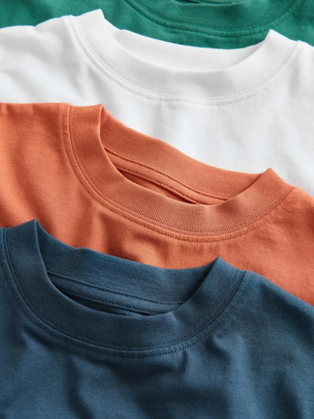 Curate your collection of essentials with our 4 Pack of boys’ T-Shirts. Made from a cotton rich blend, this pack of 4 tees are designed with short sleeves, a crew neck and cut in a regular fit. Presented in an array of colours, they’re must-have for everyday wear. 4 pack- White, navy, green, orange Cotton blend fabric Crew neck Relaxed fit Short sleeve 180 GSM Single Jersey Machine washable. 4 x T-shirt 100% Cotton.