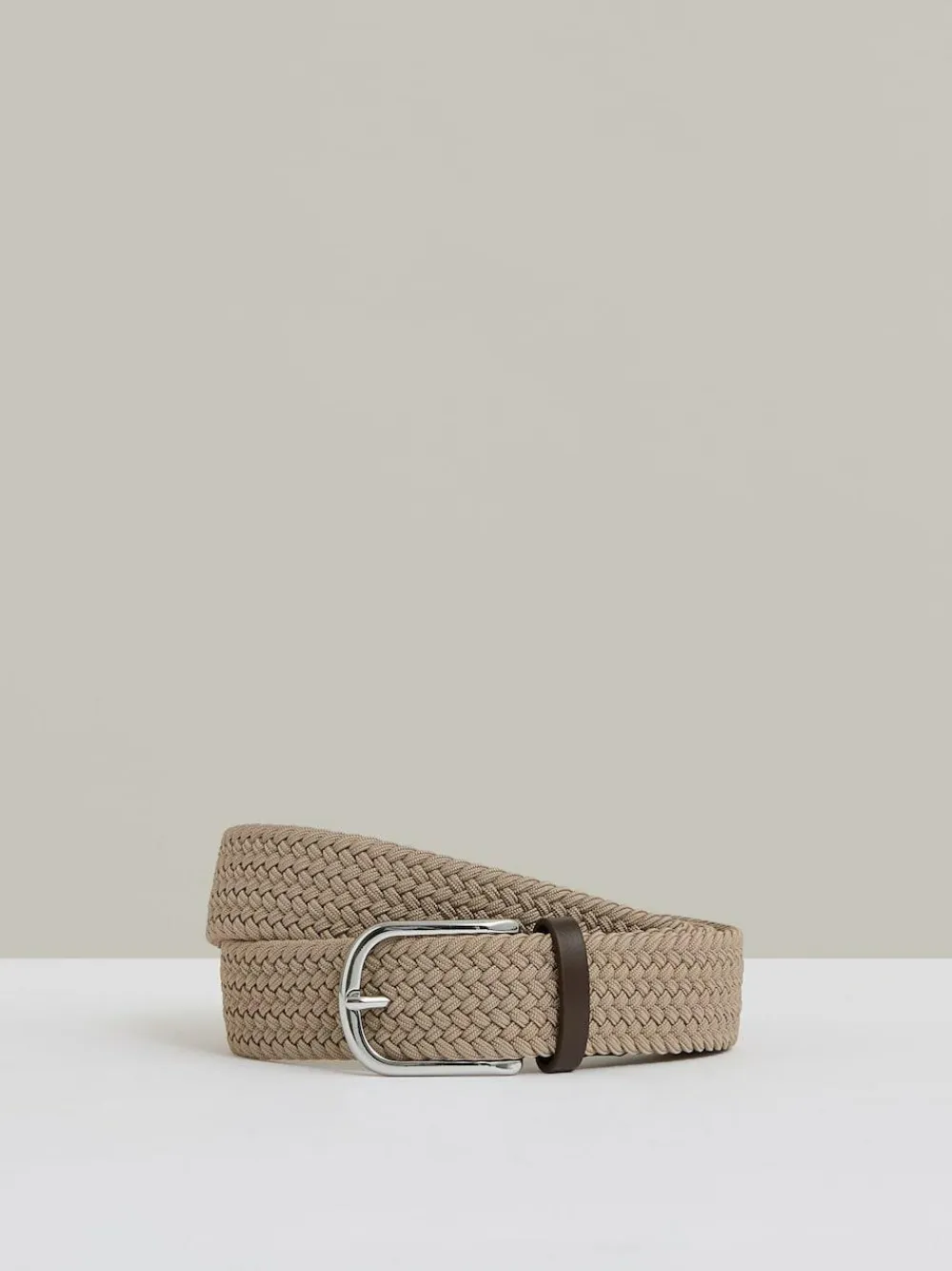 The Stone Elmont belt showcases a sophisticated basket weave texture, complemented by sleek leather trim and a polished silver-tone buckle, adding a refined touch to any ensemble. Basket weave Leather trim Silver-tone buckle fastening Width 3.5cm Main 75% Polyester, 25% Elastodiene. Trim 100% Leather.