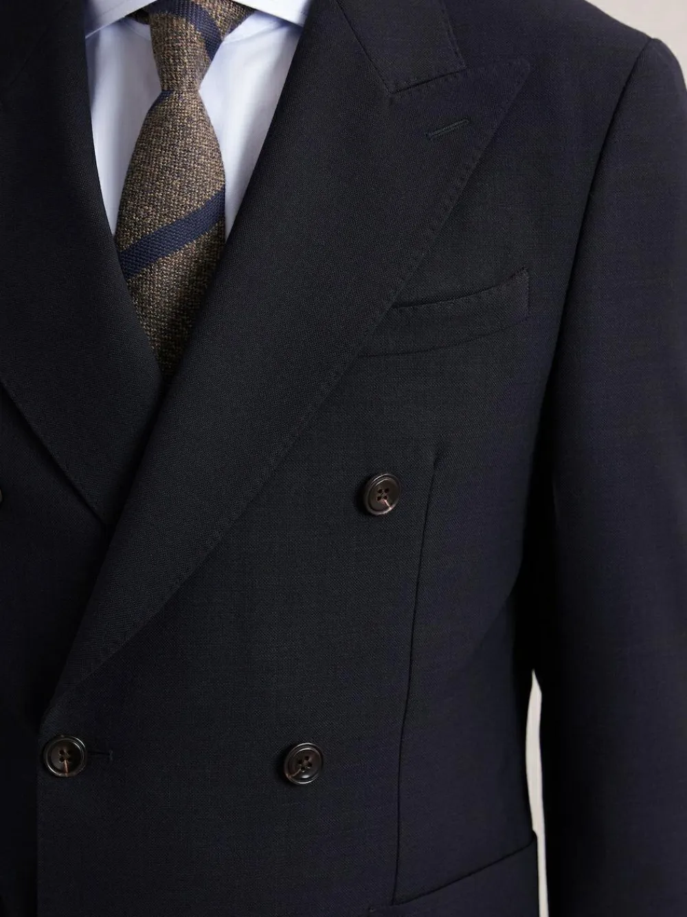The Belmont blazer is crafted from a premium wool blend, offering a refined woven texture that adds depth and sophistication. Cut for a tailored, double-breasted silhouette, it’s elevated by peak lapels, intricate pick stitching and a six-button front. A partial lining ensures a lightweight feel. Crafted with wool Woven texture Double-breasted Tailored fit Peak lapels Pick stitching The model is wearing a size 38 Measurements of model: 6ft2” / 189cm Dry clean only. 59% Polyester, 33% Wool, 8% Elastane.