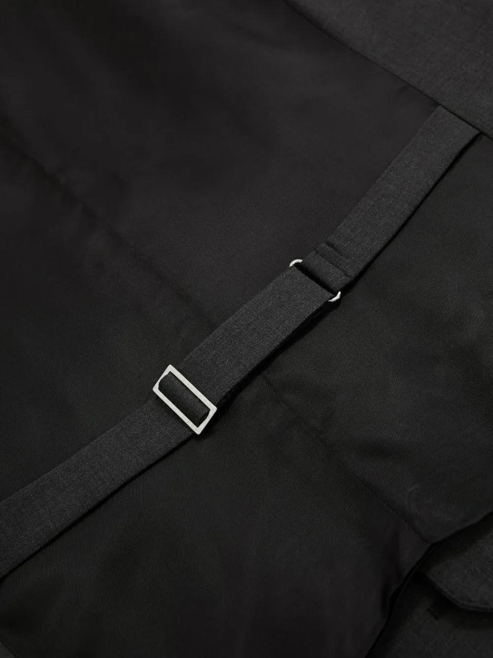 The Promise waistcoat is crafted from a refined wool-blend in a plain weave, offering a sleek tailored fit. The single-breasted design is complemented by two welt pockets and an adjustable strap at the back. Wool blend Single-breasted Tailored fit Welt pockets Adjustable strap to reverseThe model is wearing a size 38Measurements of model: Height 6ft 2.5 / 189cm Dry clean only. 55% Wool, 41% Polyester, 4% Elastane.