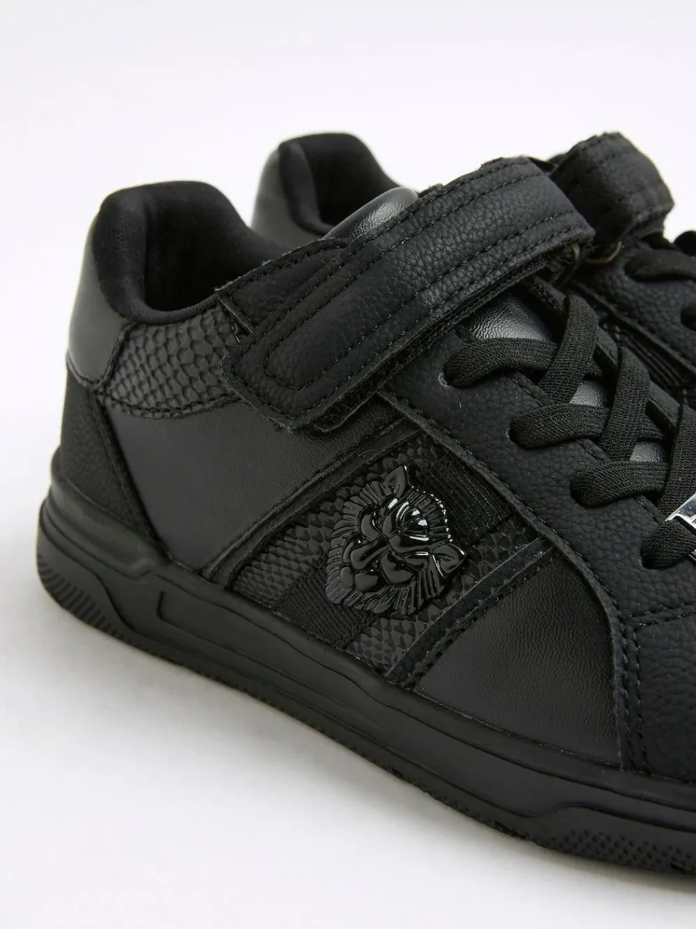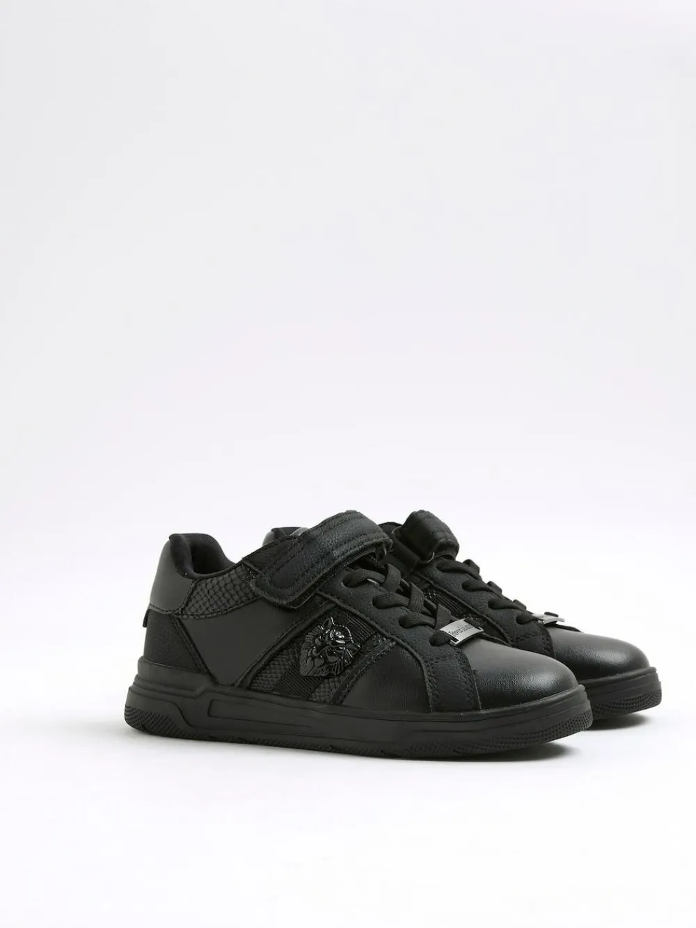 Discount River Island Black Faux Leather Lion Head Trainers