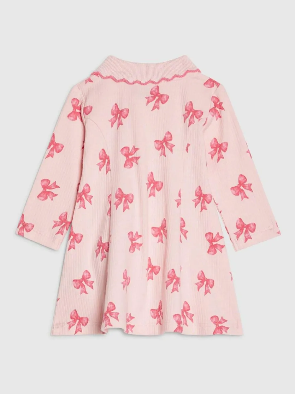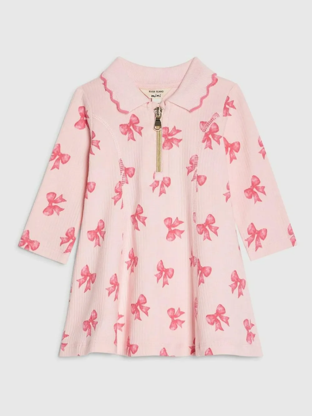 Discount River Island Pink Long Sleeve Bow Collar Rib Dress
